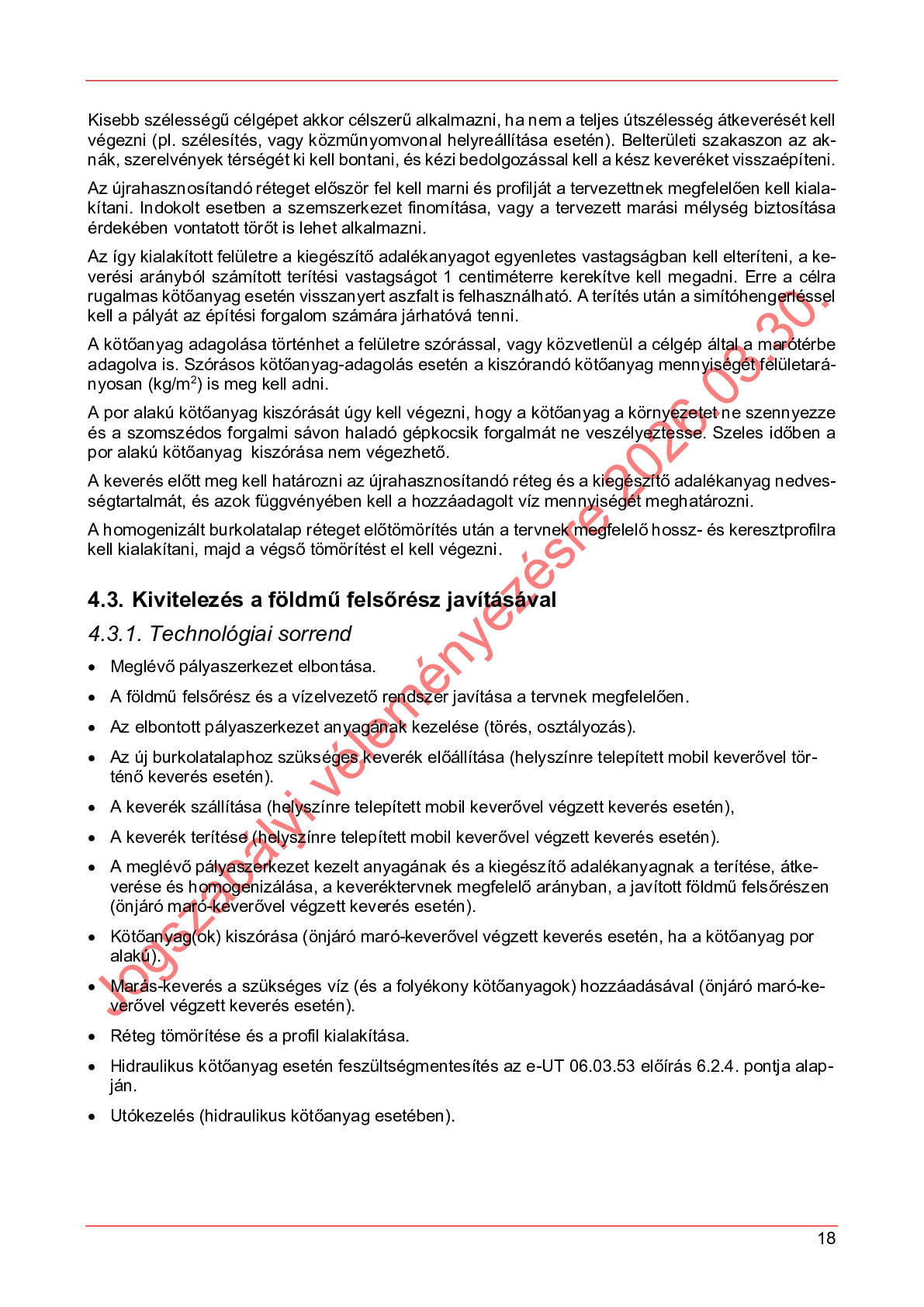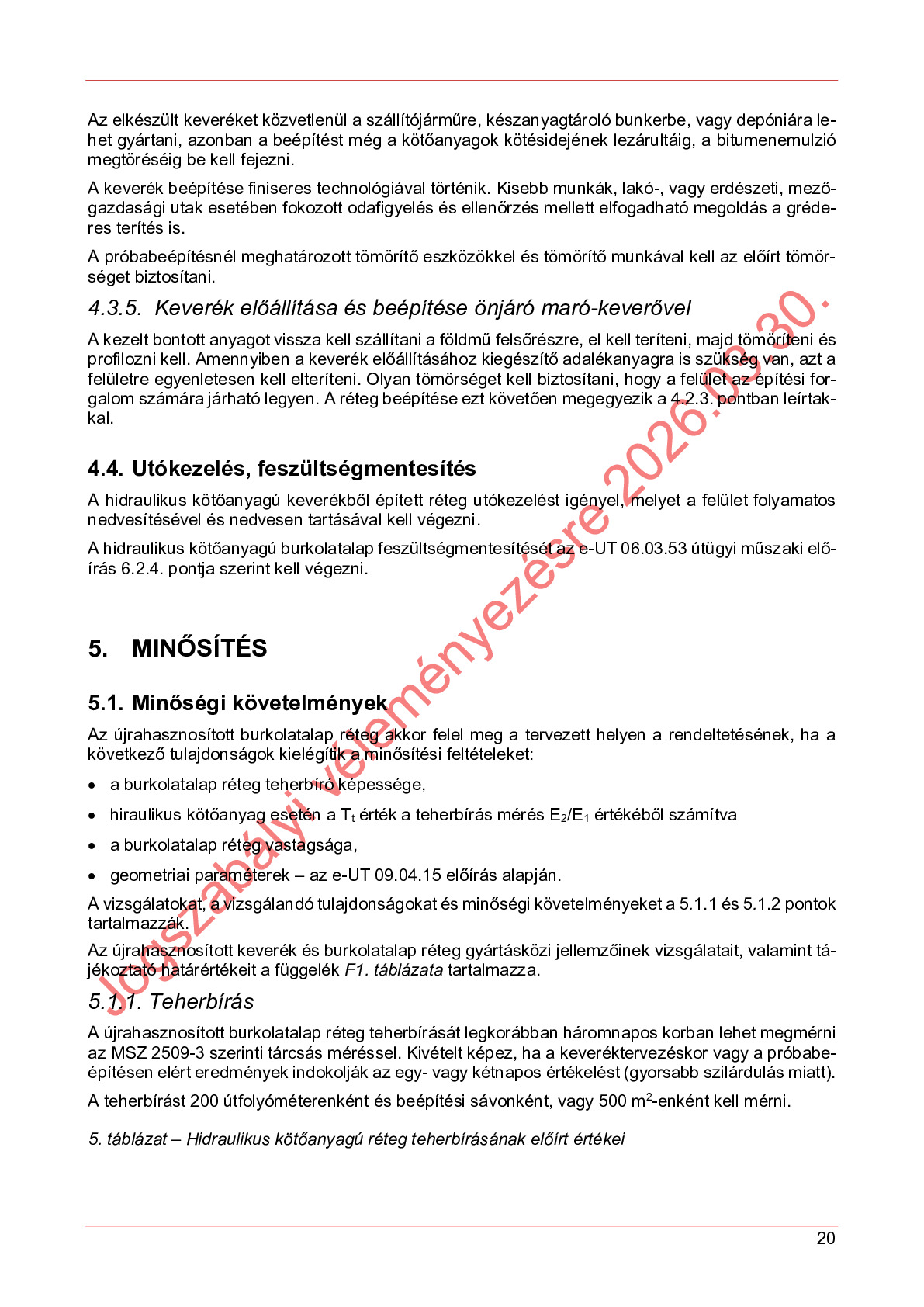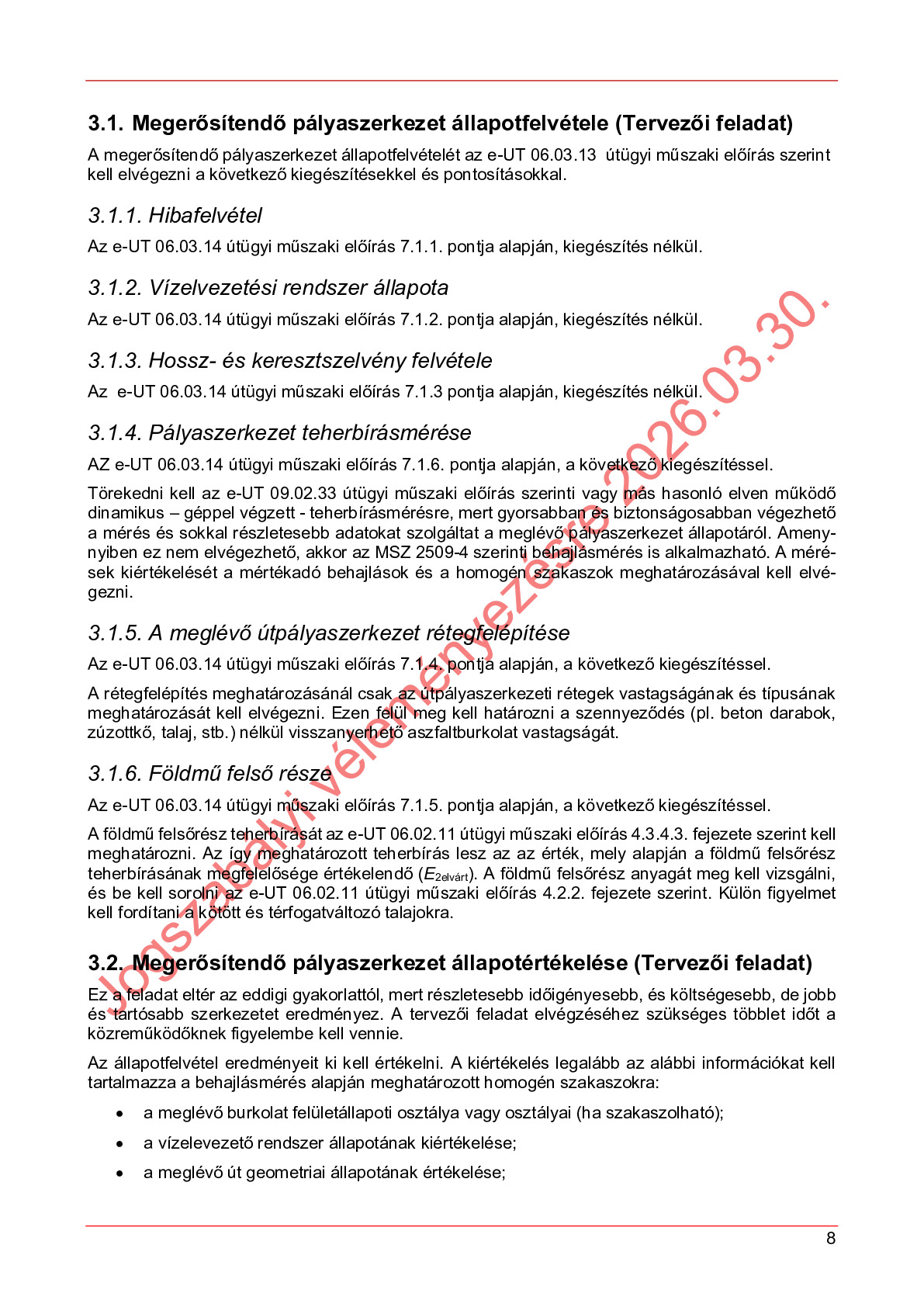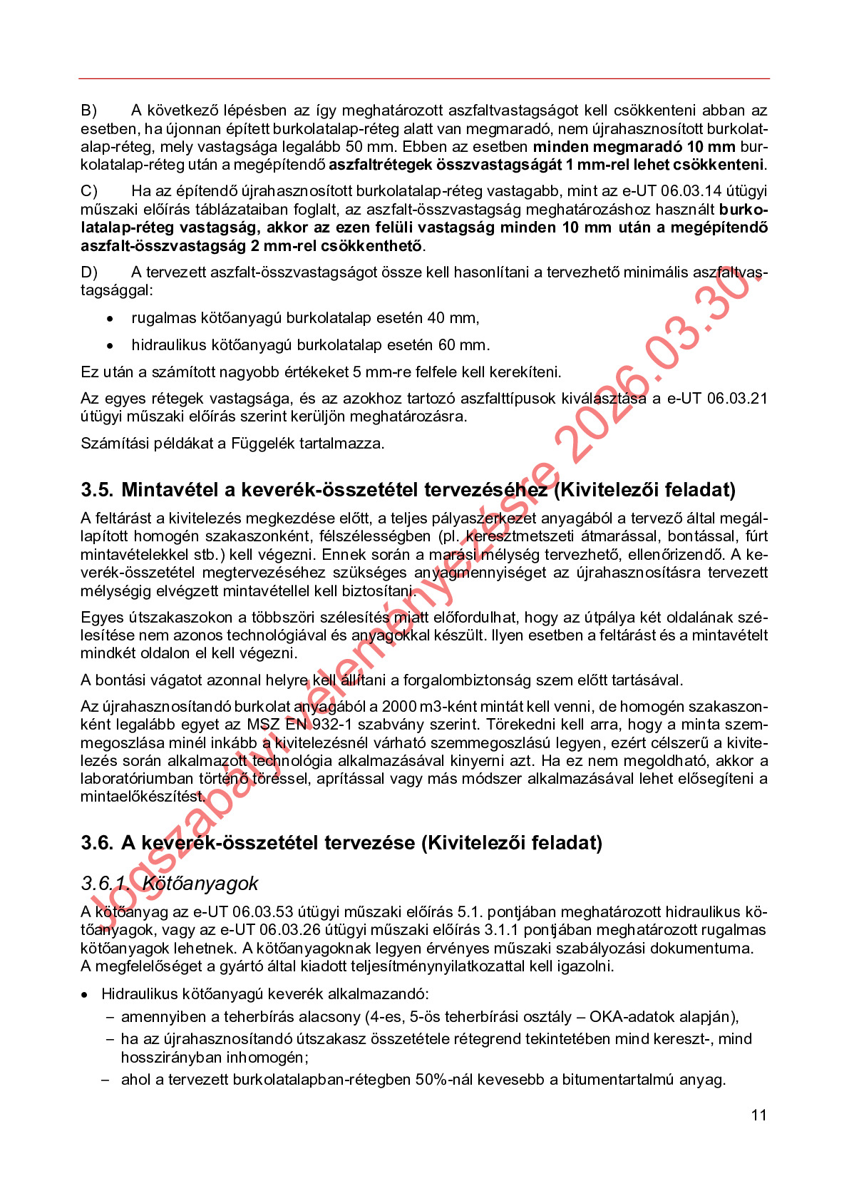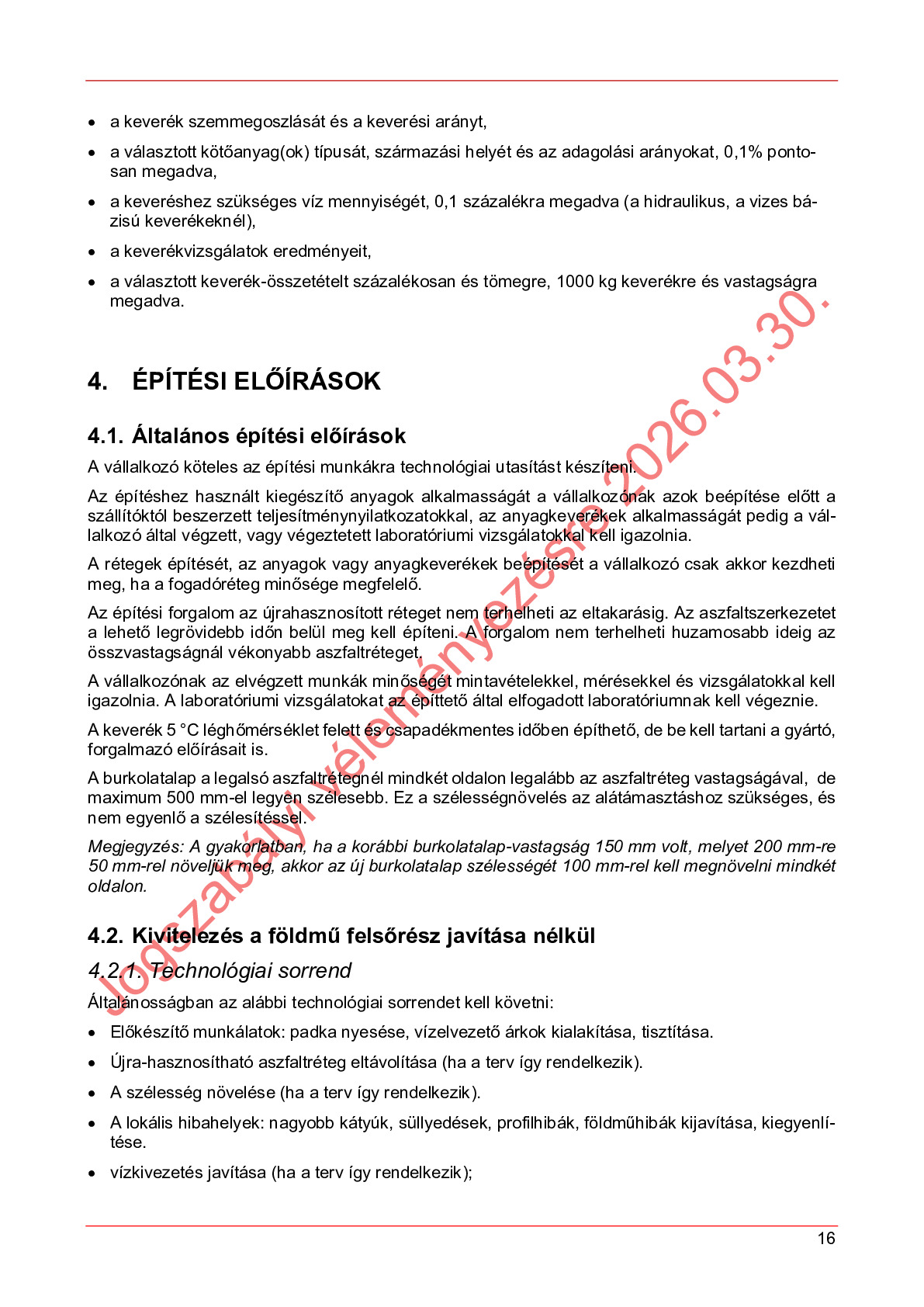 Hatálybalépés előtti útügyi műszaki előírások