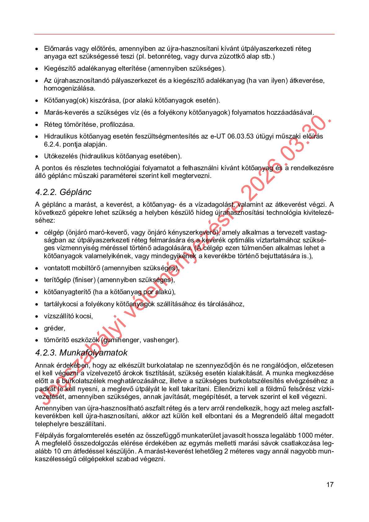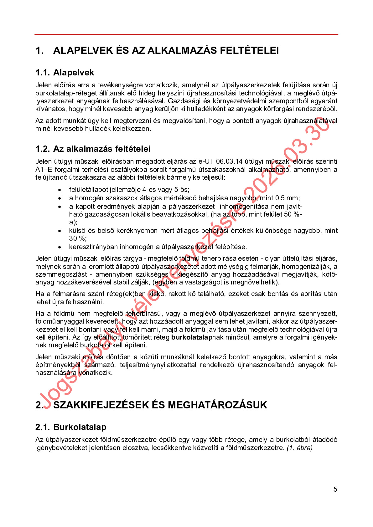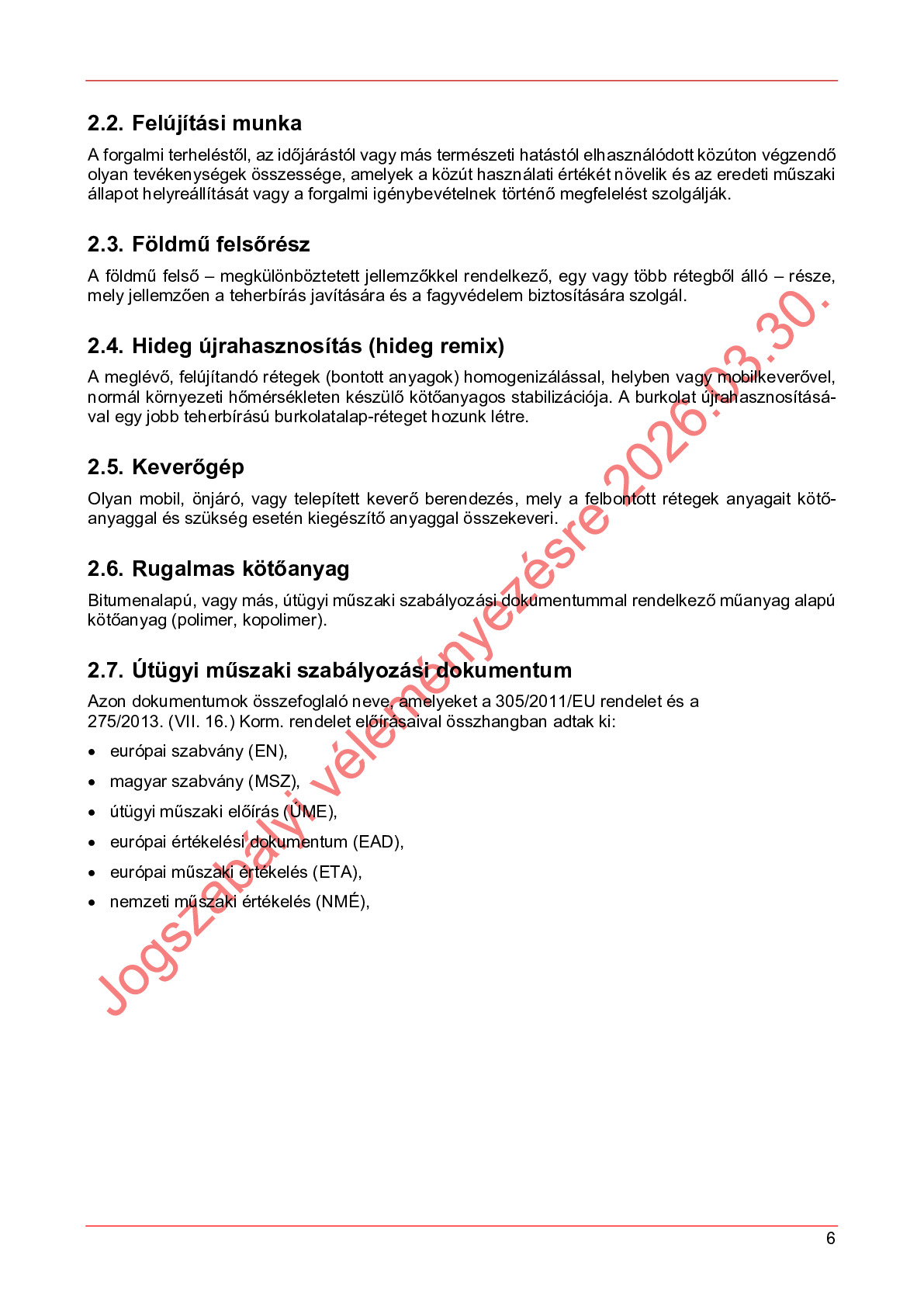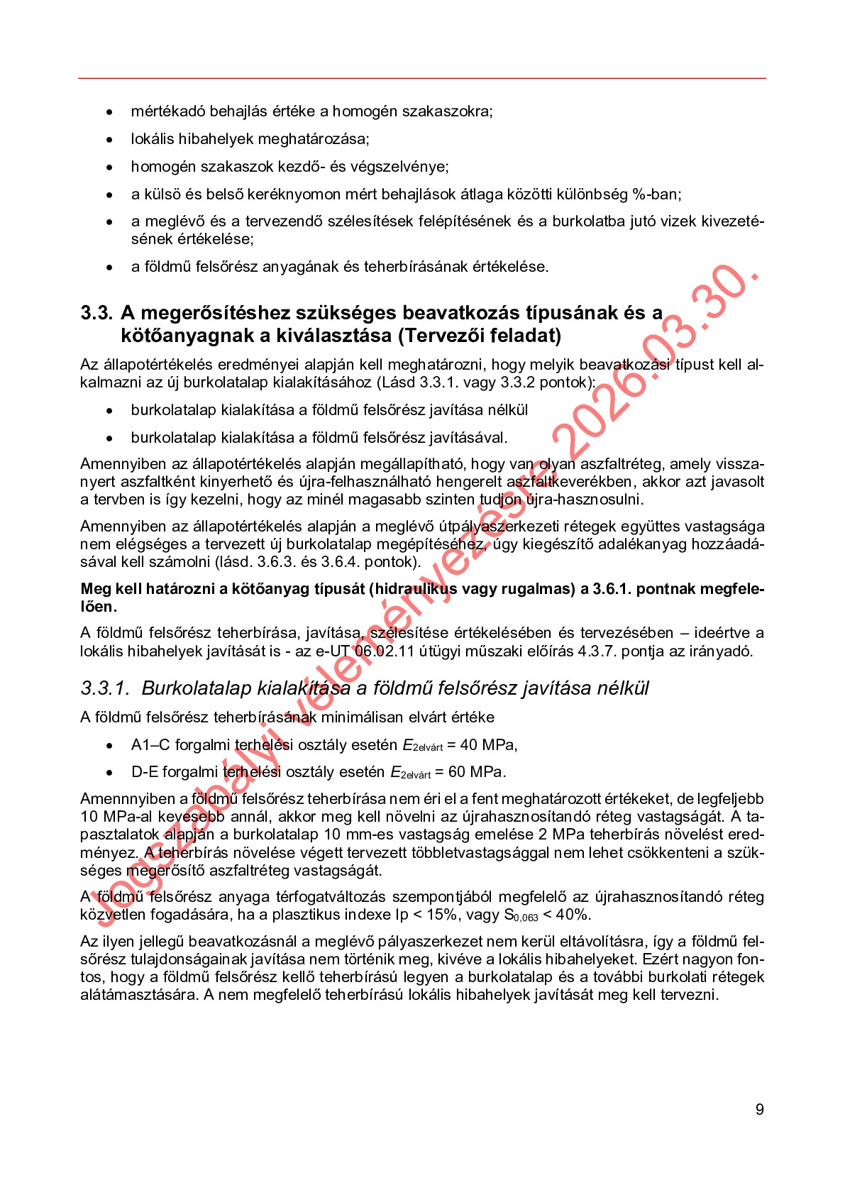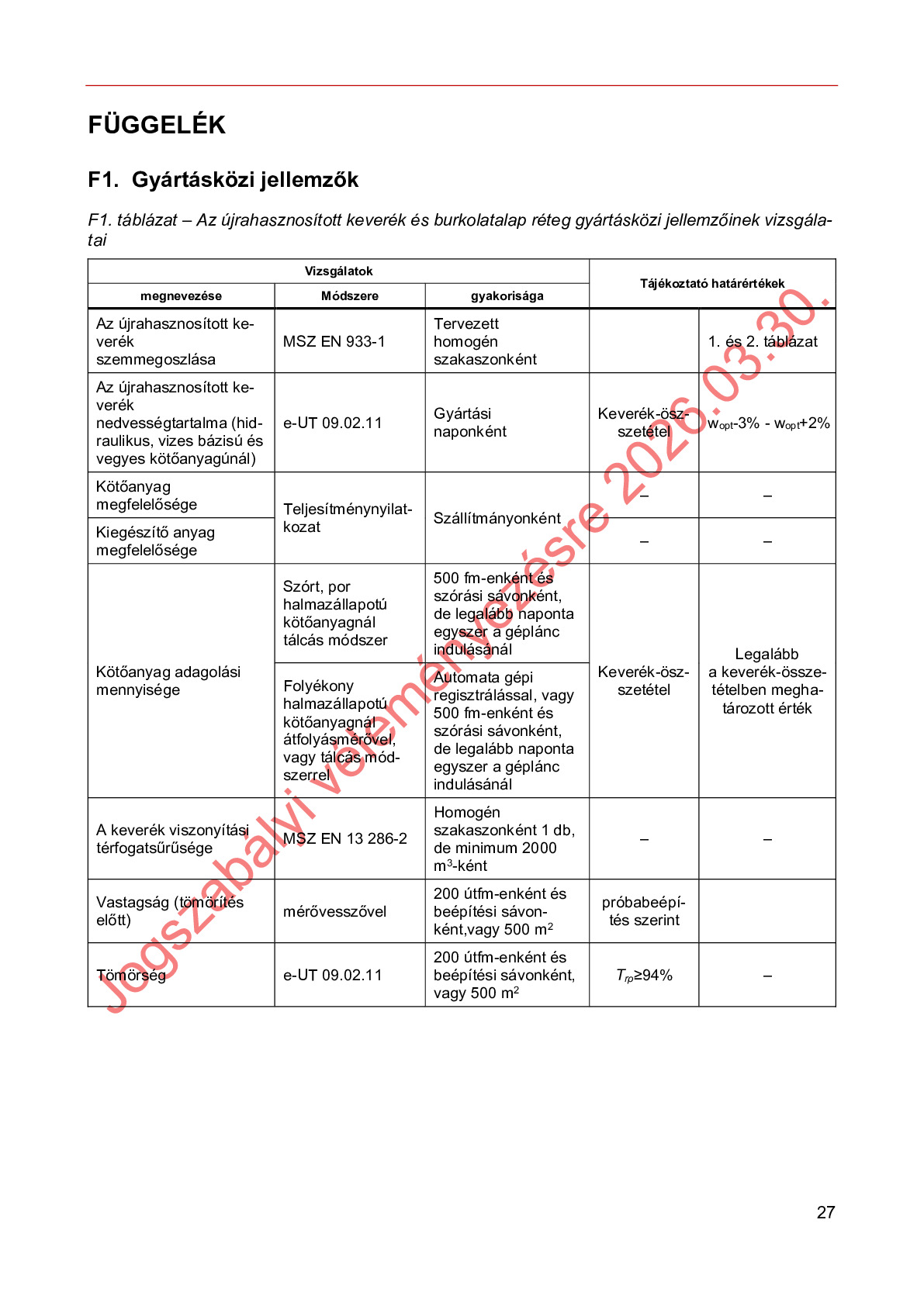 Hatálybalépés előtti útügyi műszaki előírások