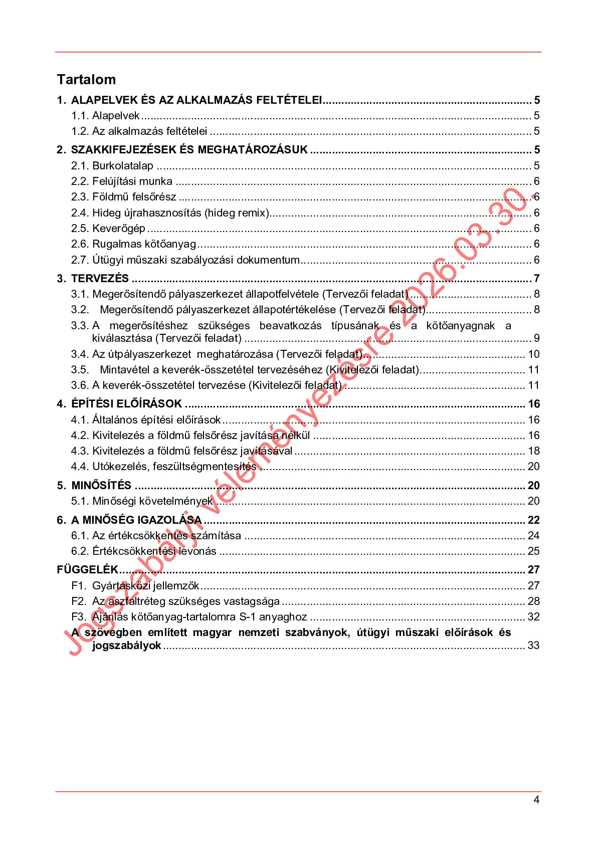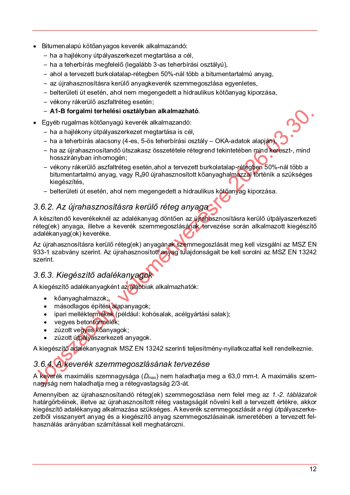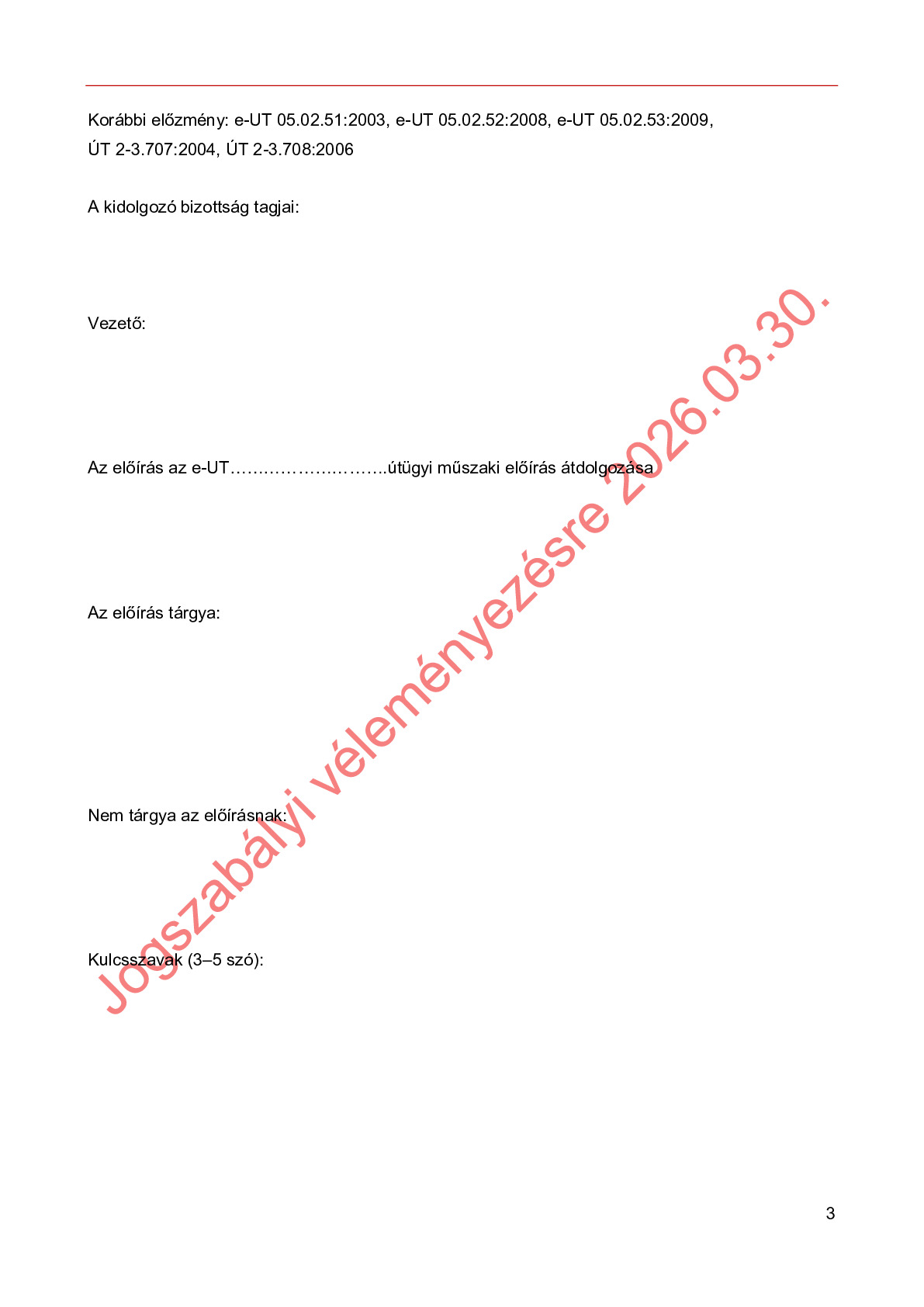 Véleményezés alatt lévő útügyi műszaki előírások