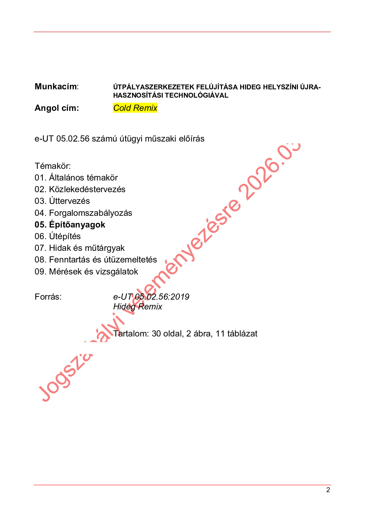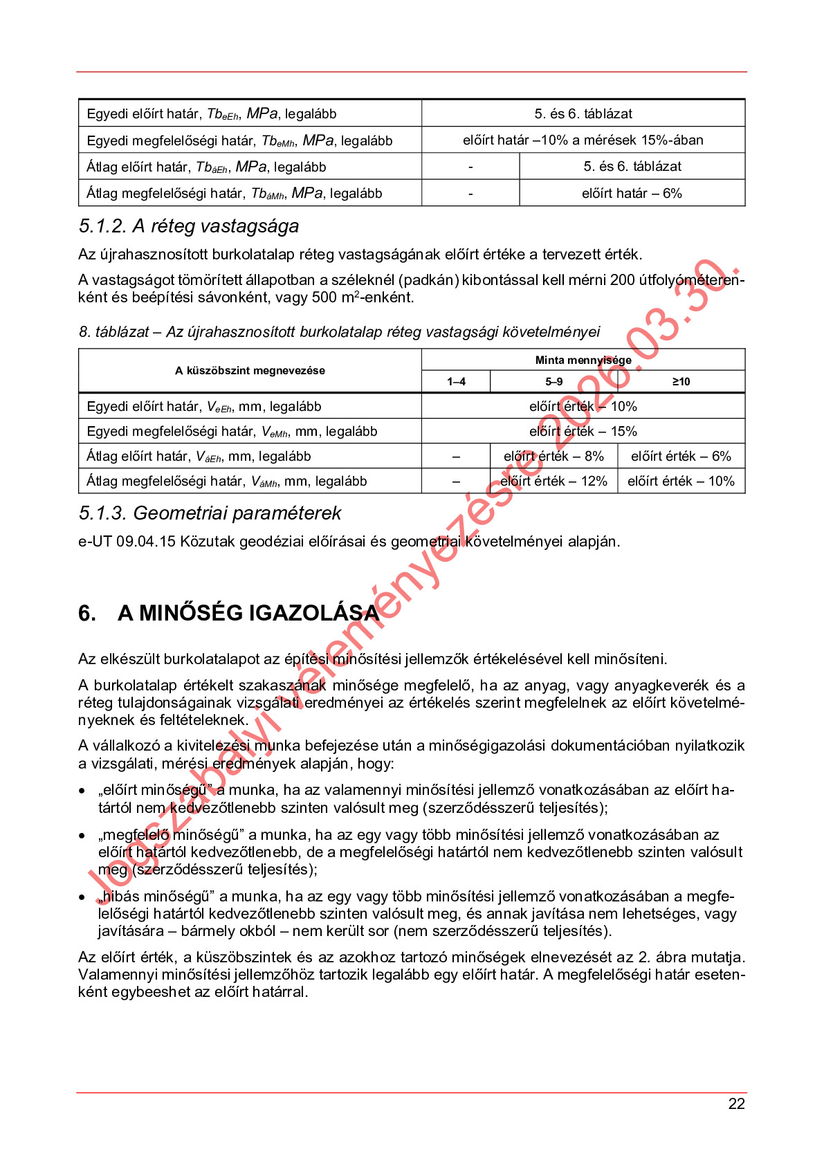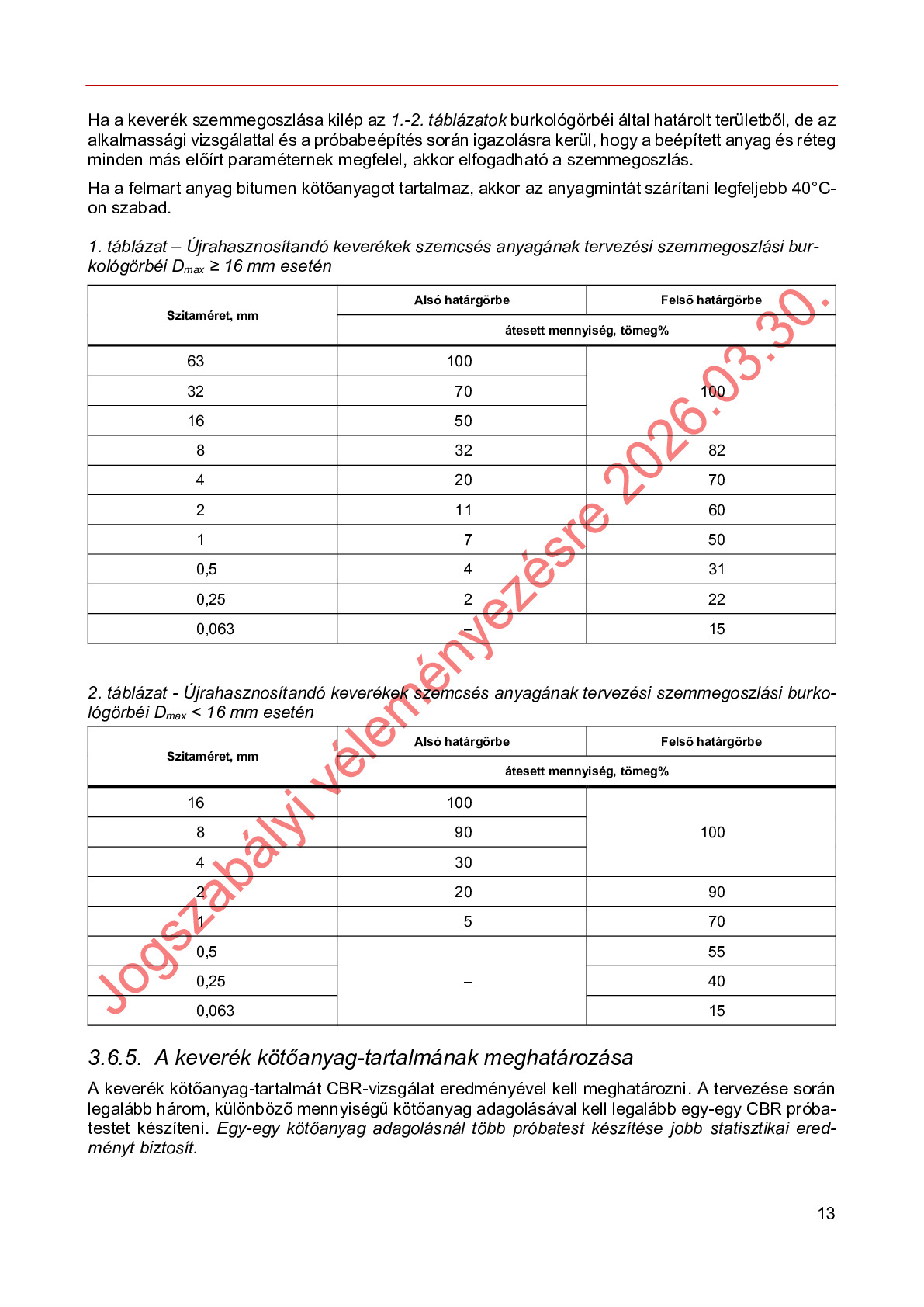 Véleményezés alatt lévő útügyi műszaki előírások
