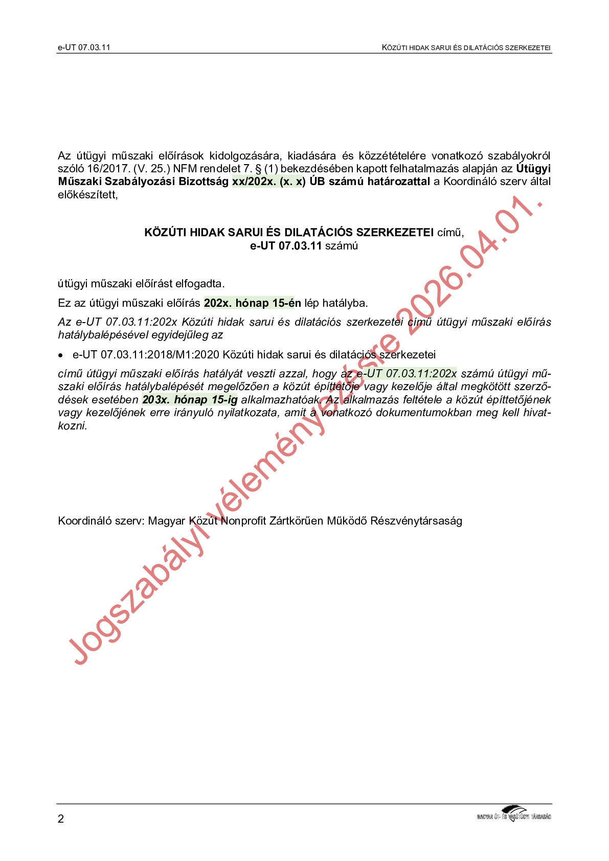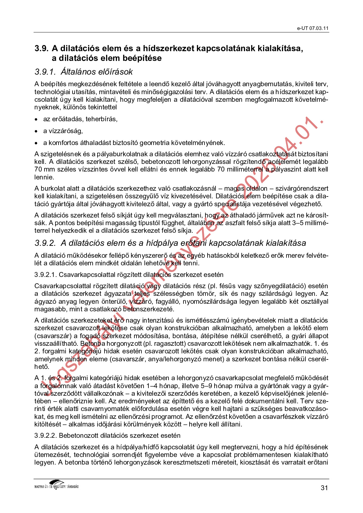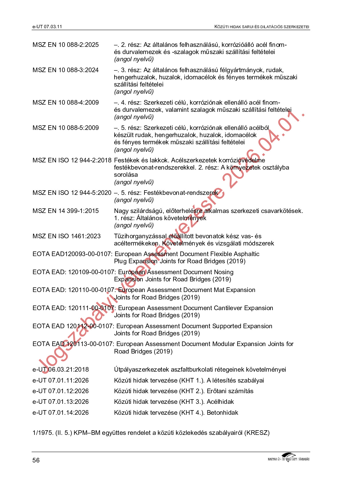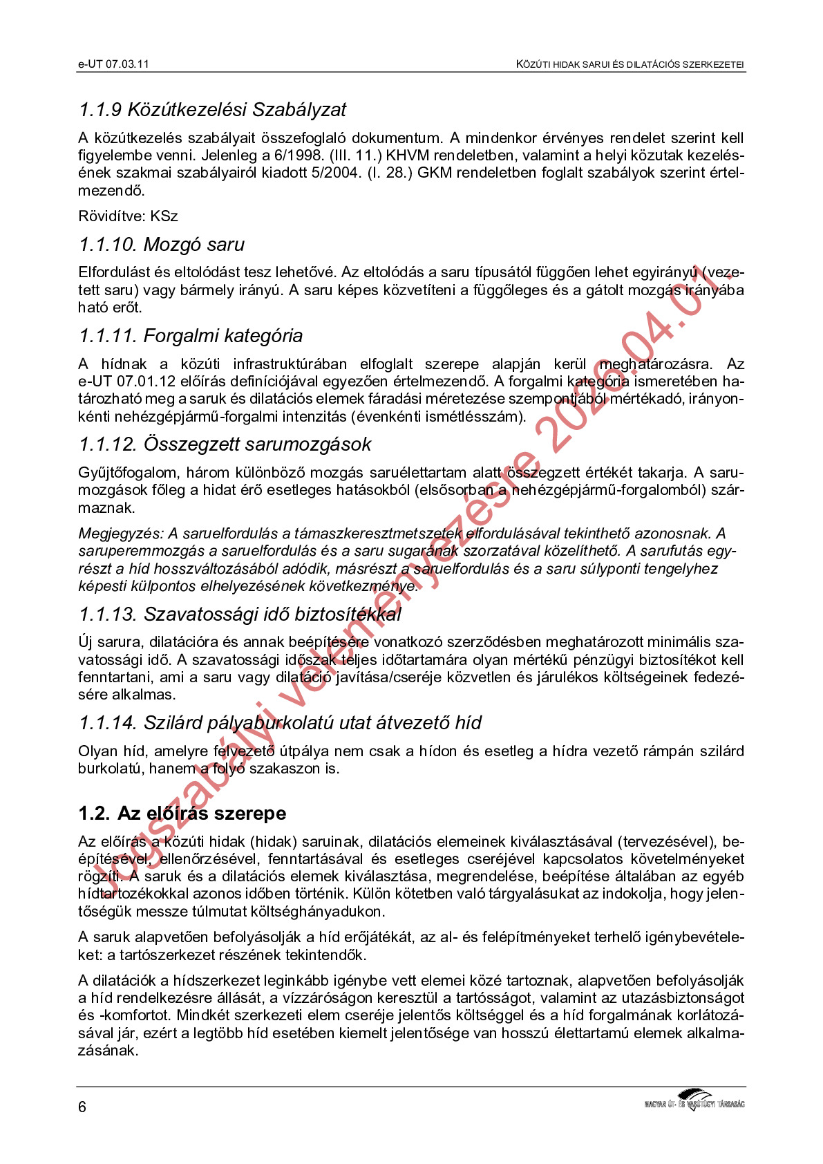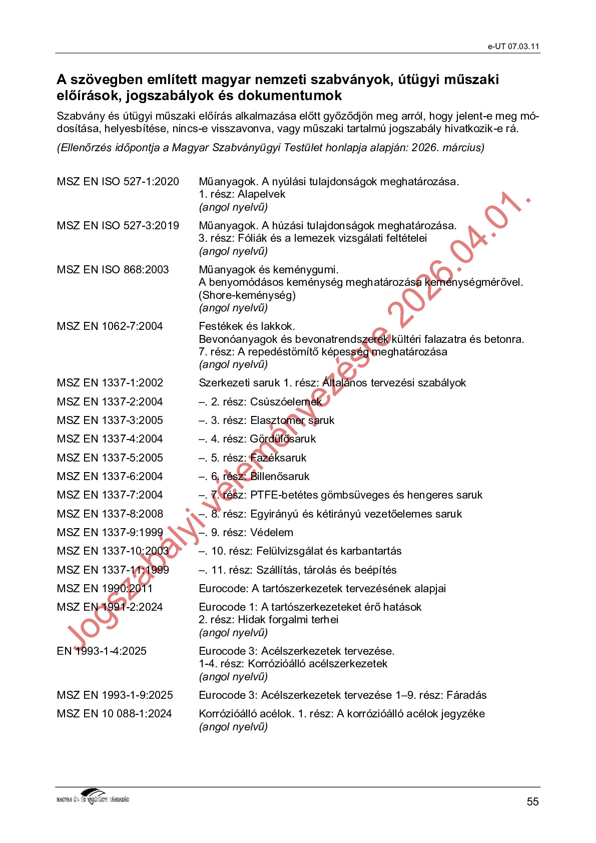 Archív, hatályt vesztet Útügyi Műszaki Előírások