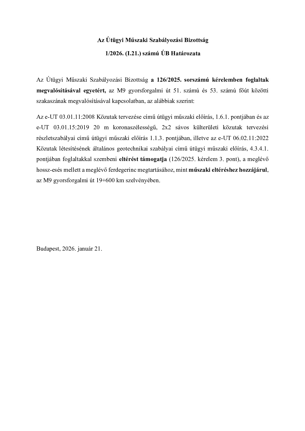 1/2026. (I.21.) ÚB határozat - M9 gyorsforgalmi út 51. számú és 53. számú főút közötti szakaszának megvalósítása