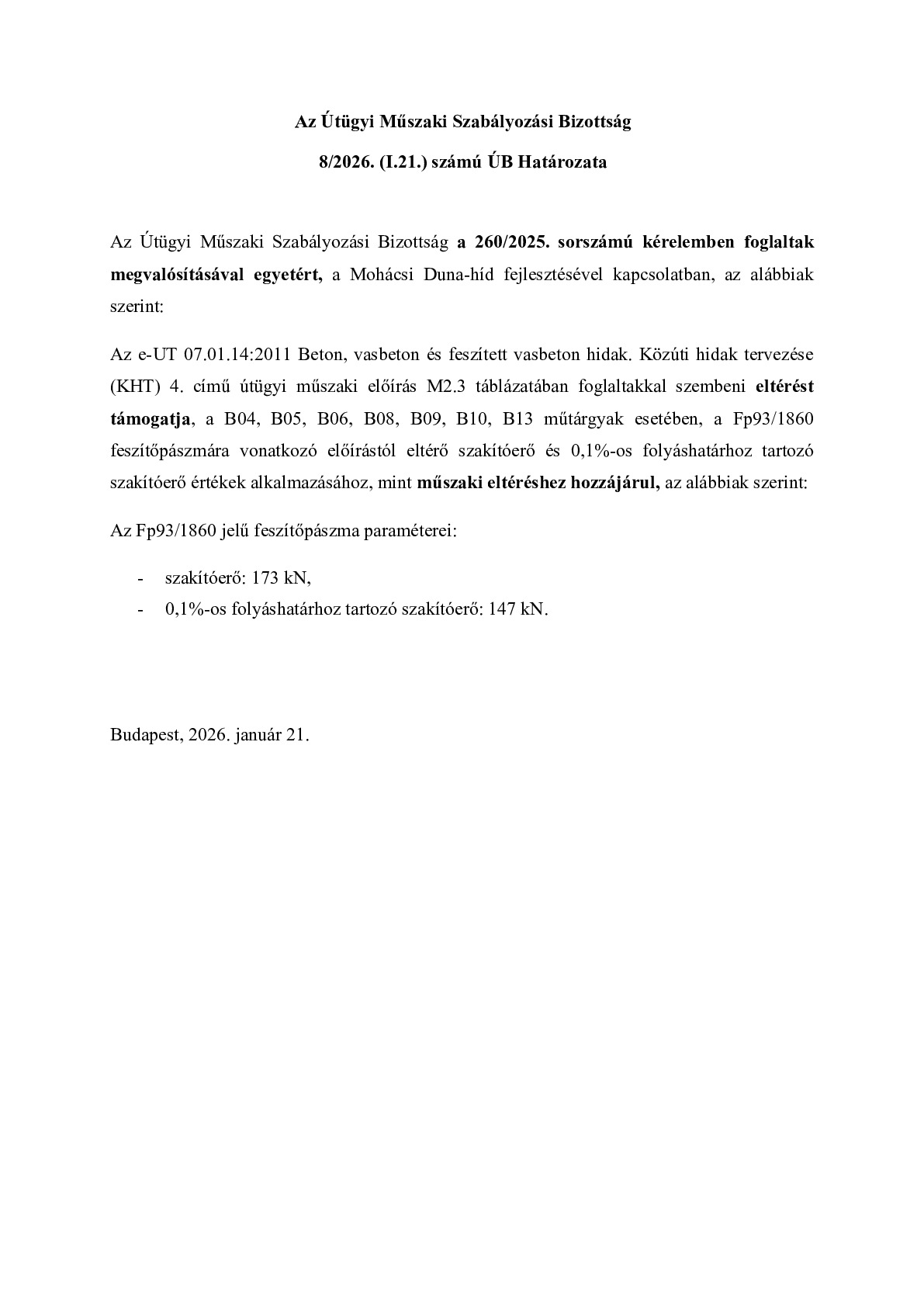 8/2026. (I.21.) ÚB határozat - Mohácsi Duna-híd fejlesztése