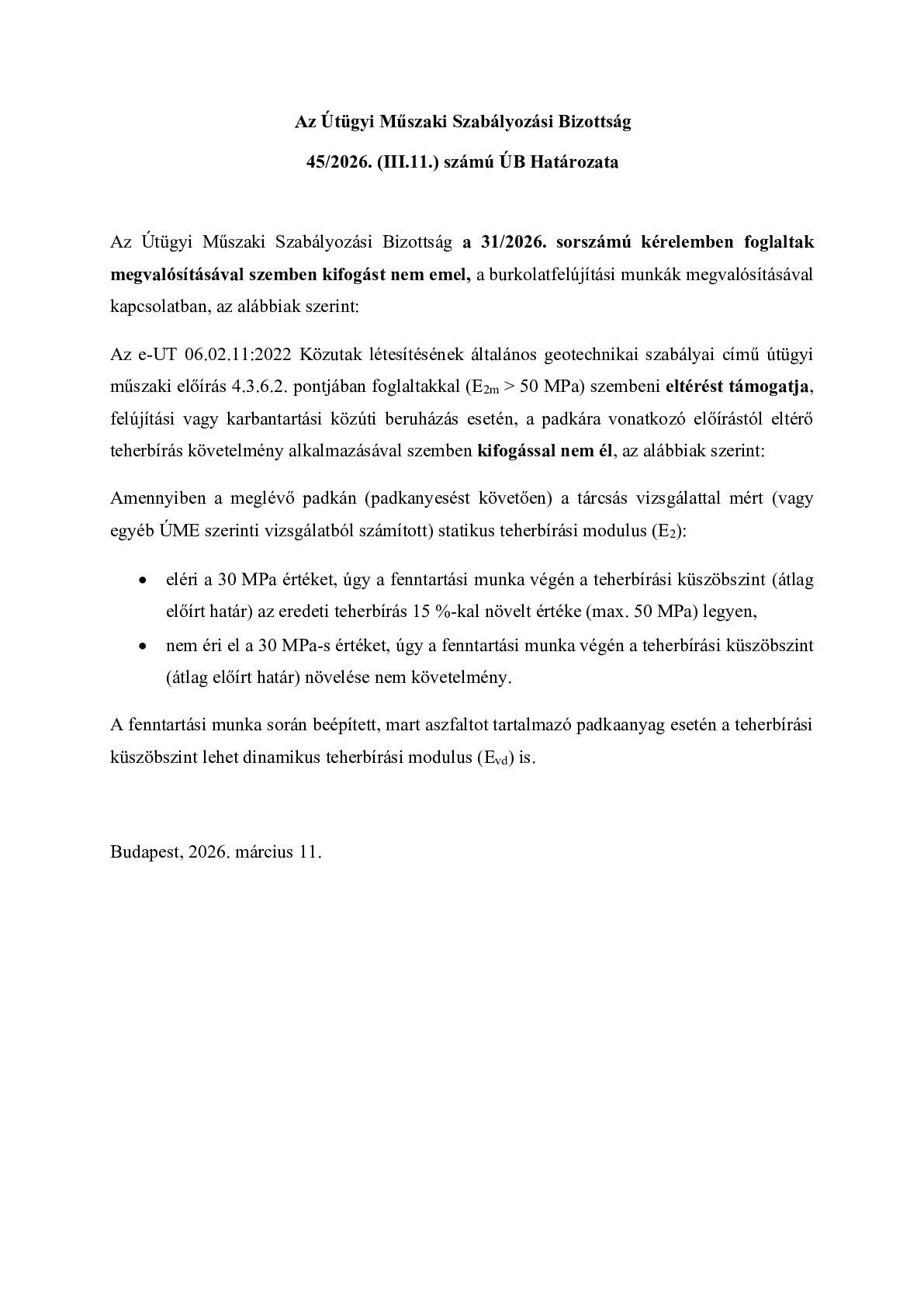 45/2026. (III.11.) ÚB határozat - Burkolatfelújítási munkák megvalósítása