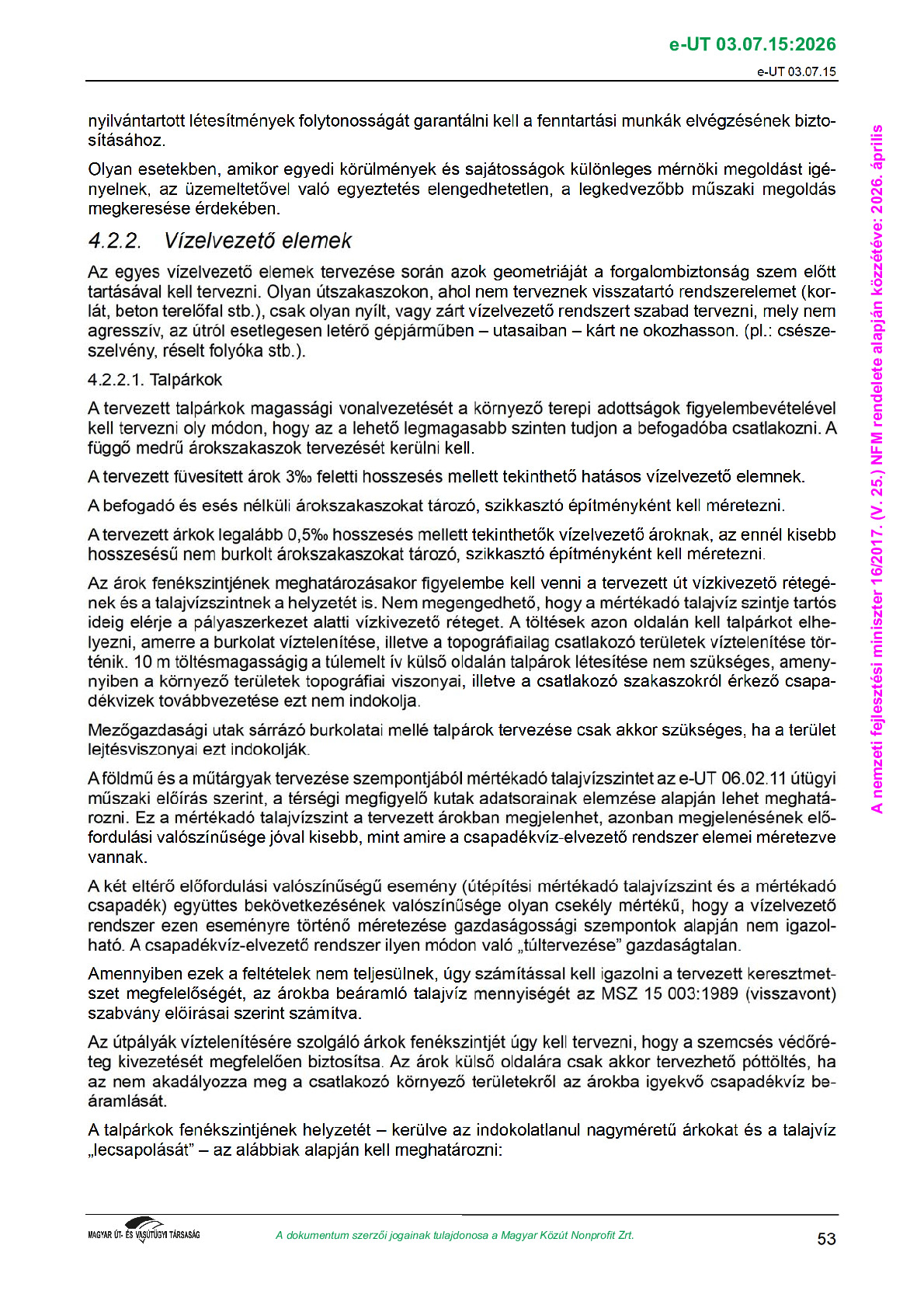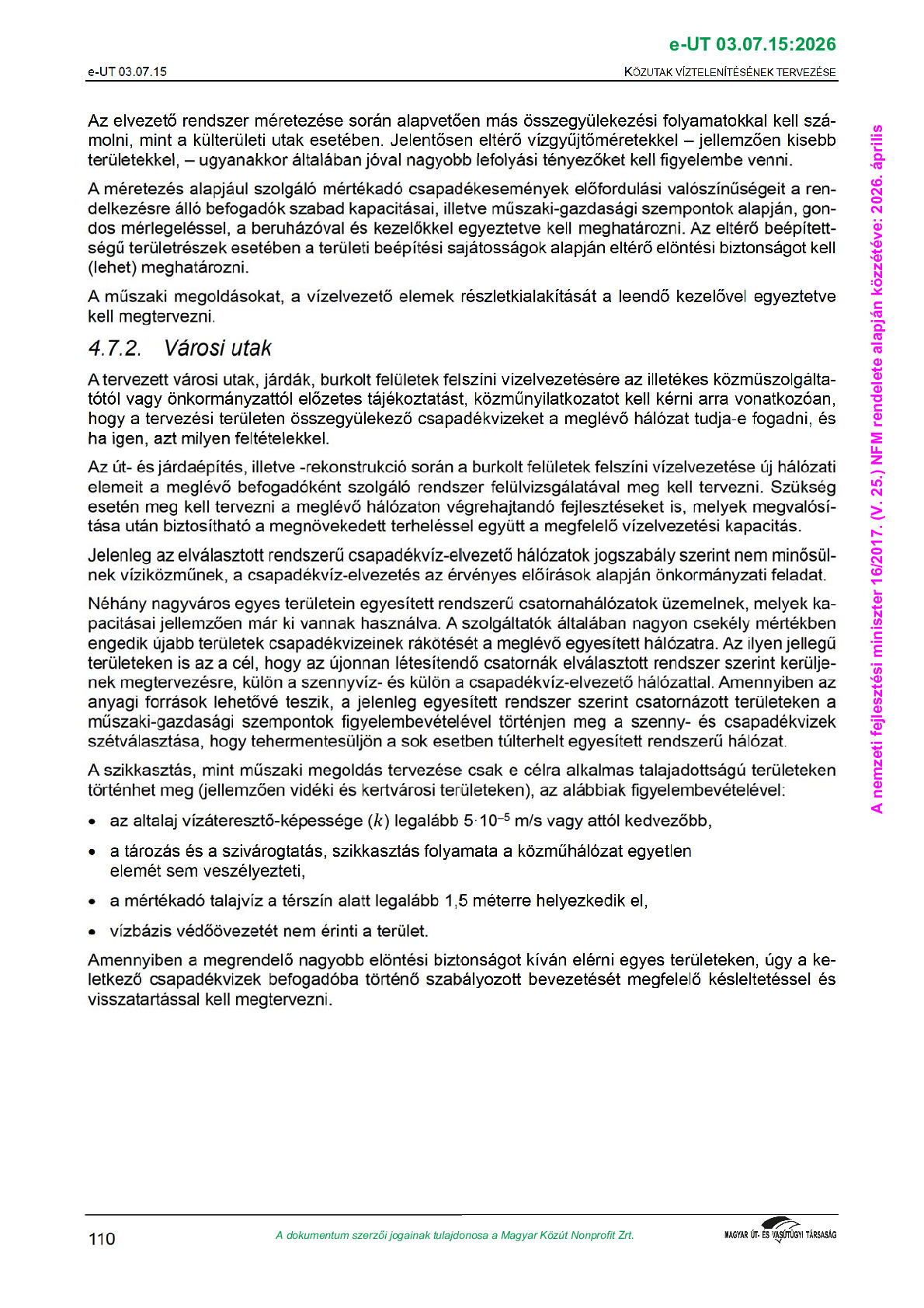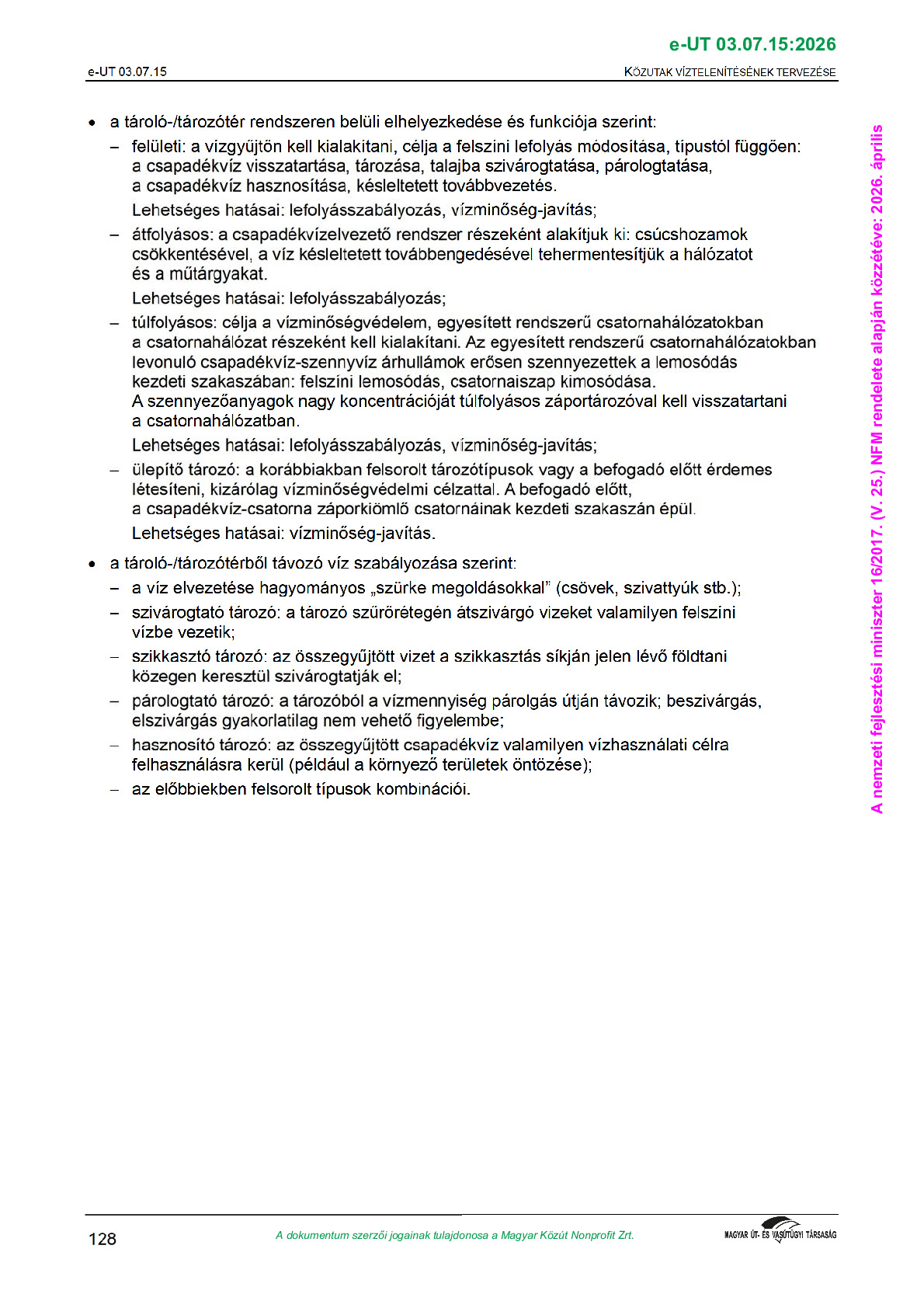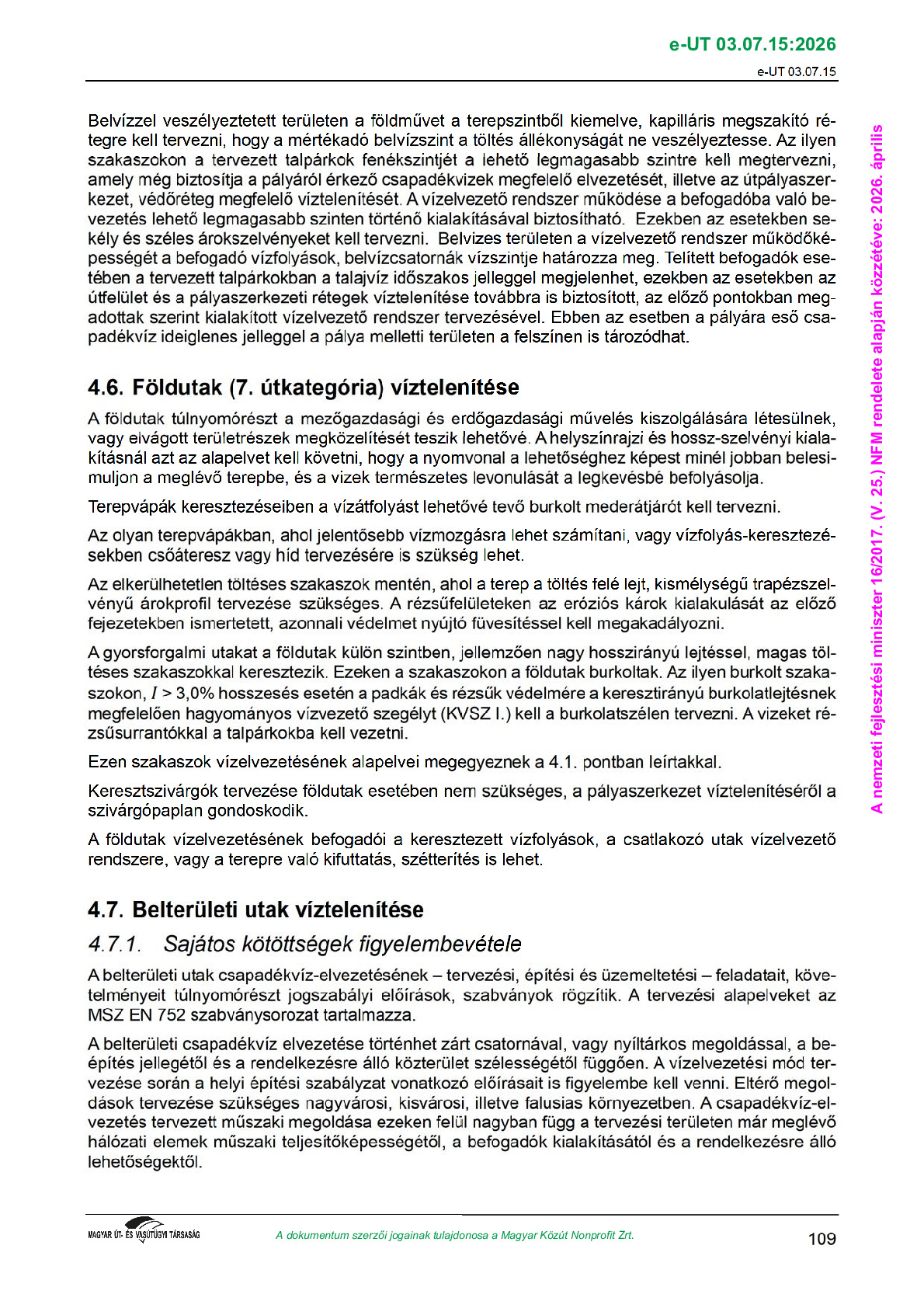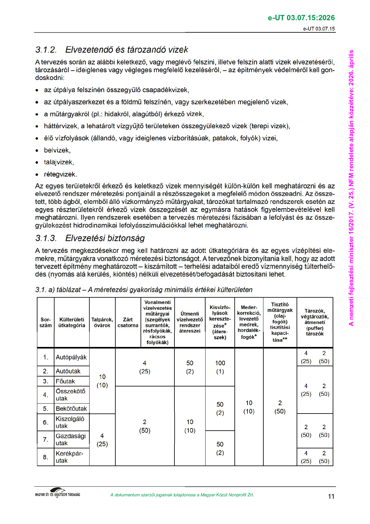 e-UT 03.07.15:2026 Közutak víztelenítésének tervezése
