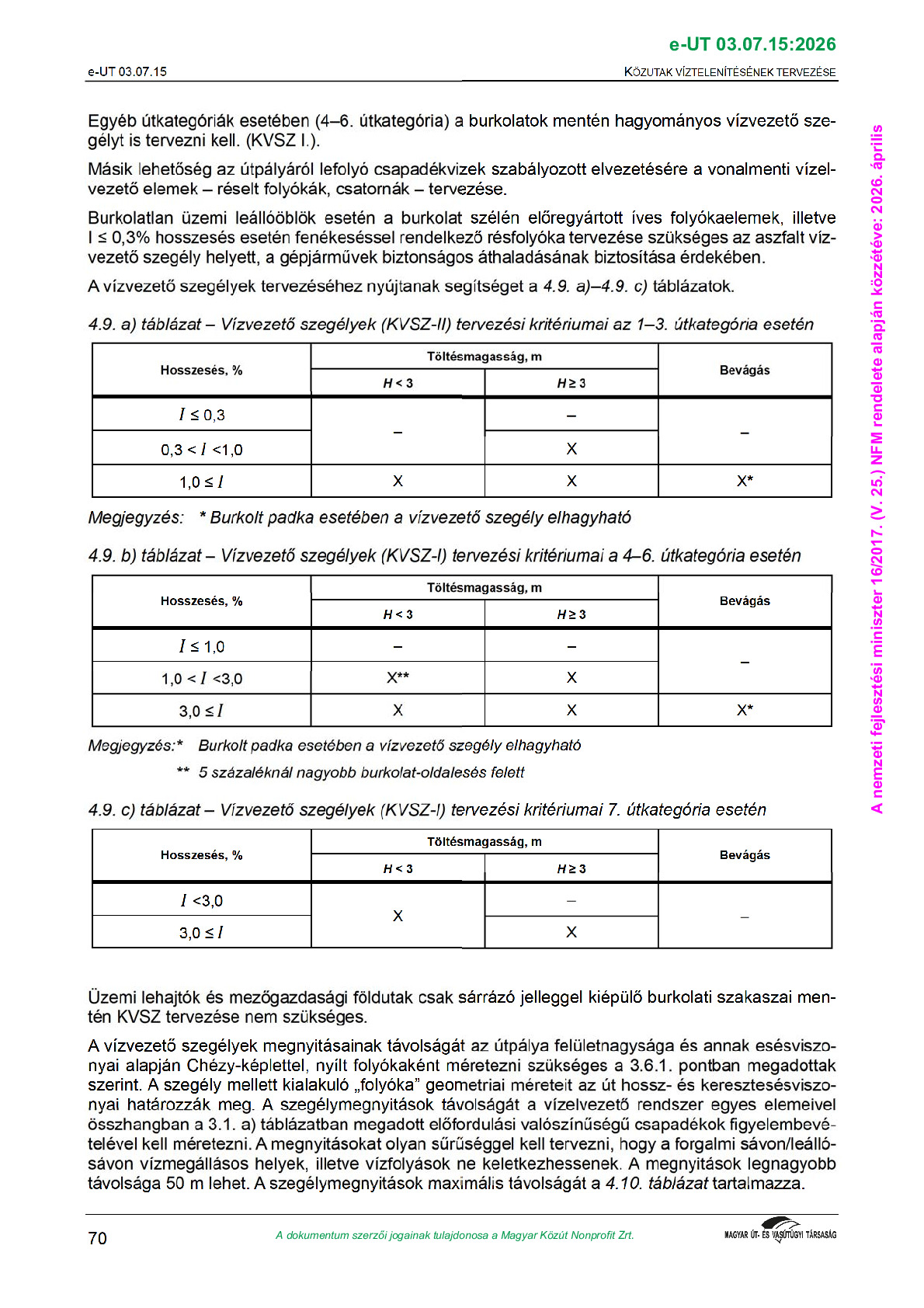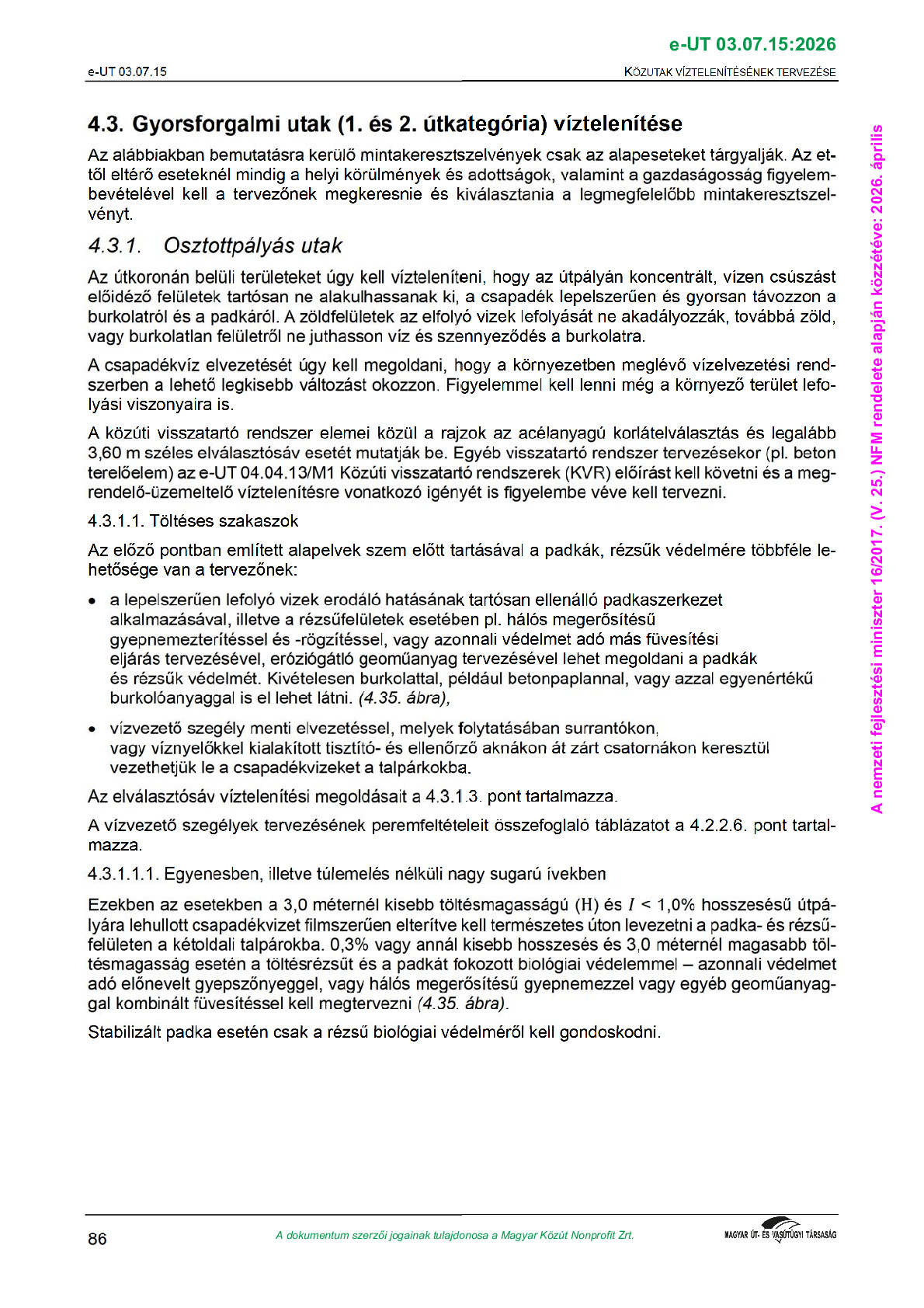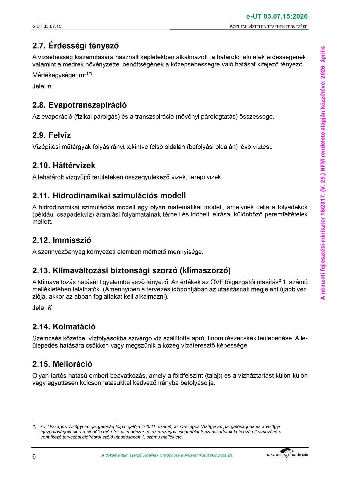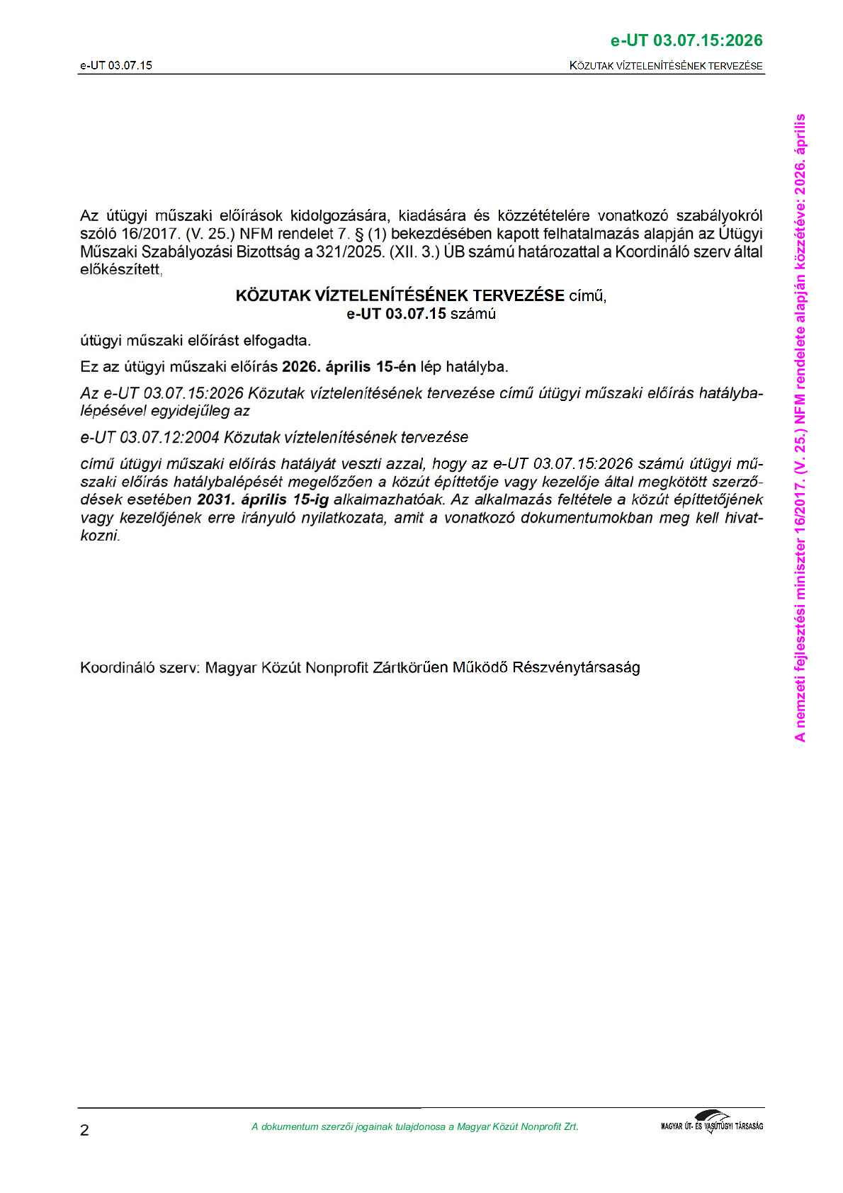 e-UT 03.07.15:2026 Közutak víztelenítésének tervezése