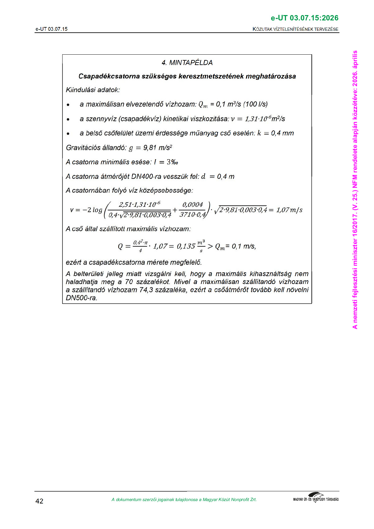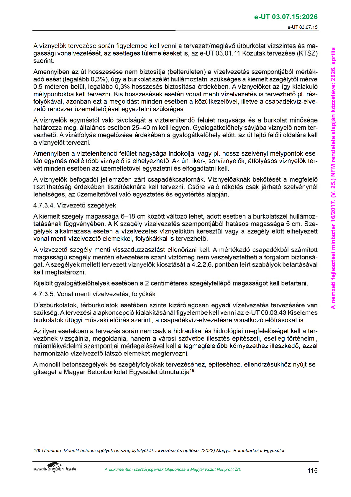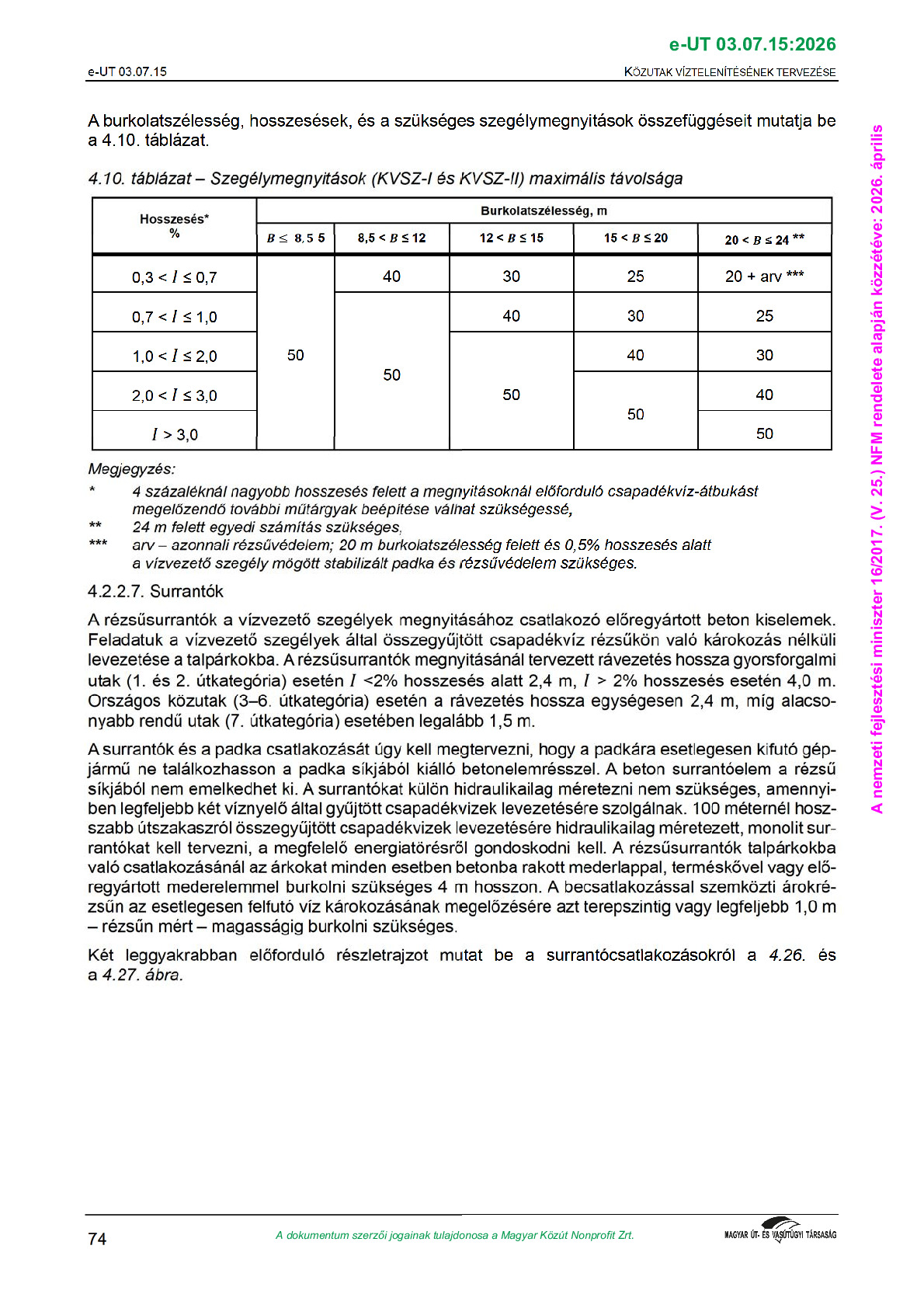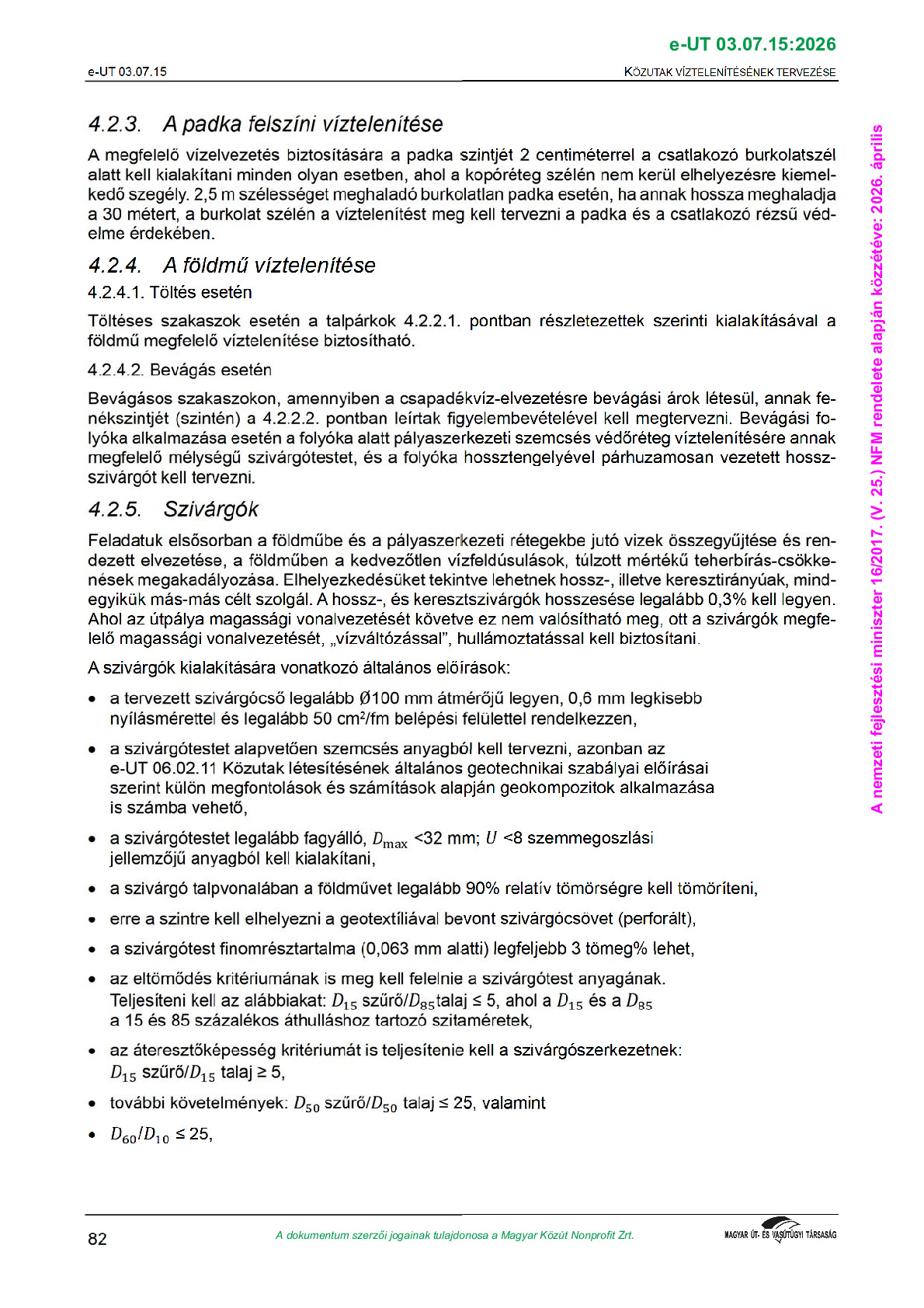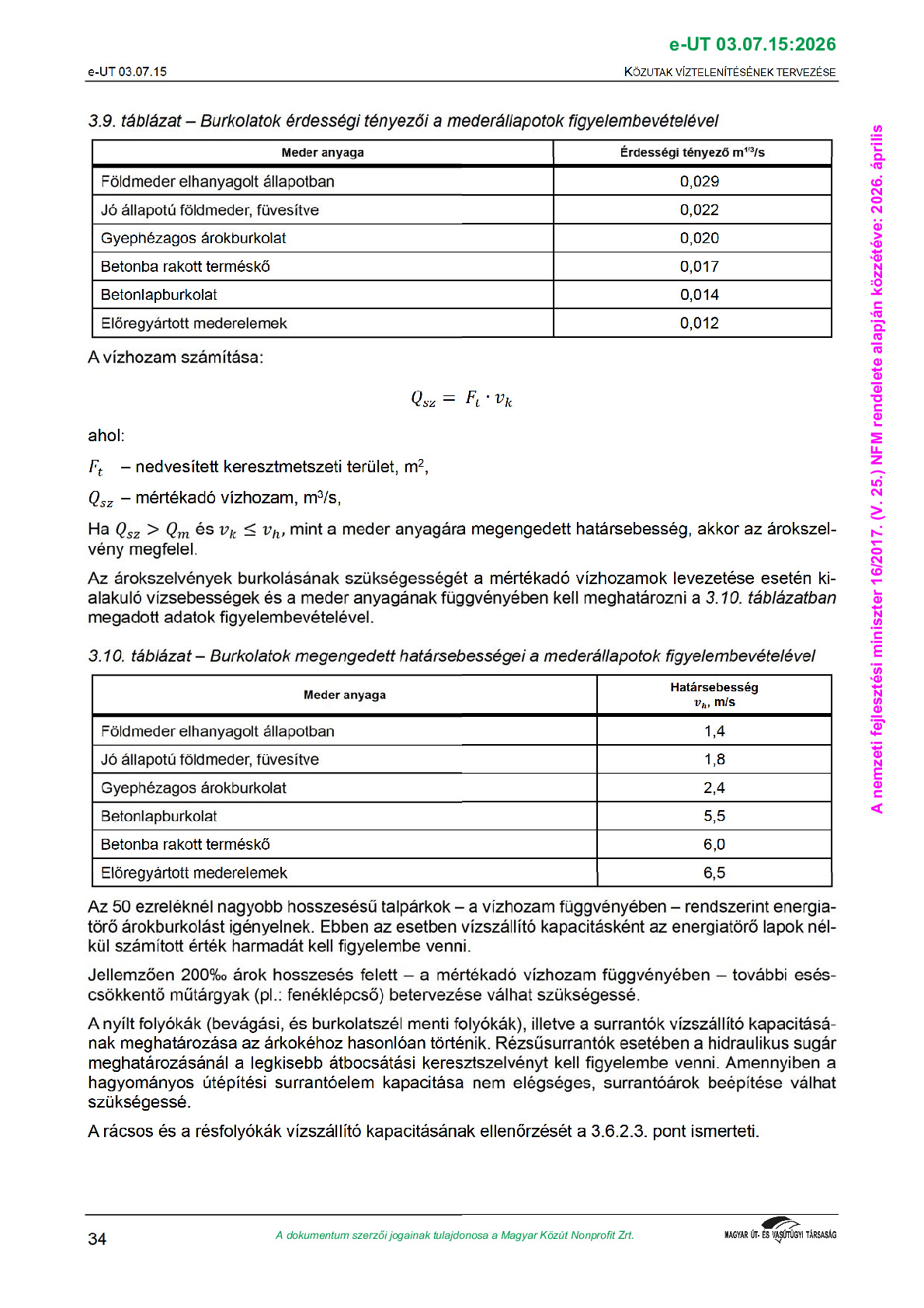 e-UT 03.07.15:2026 Közutak víztelenítésének tervezése
