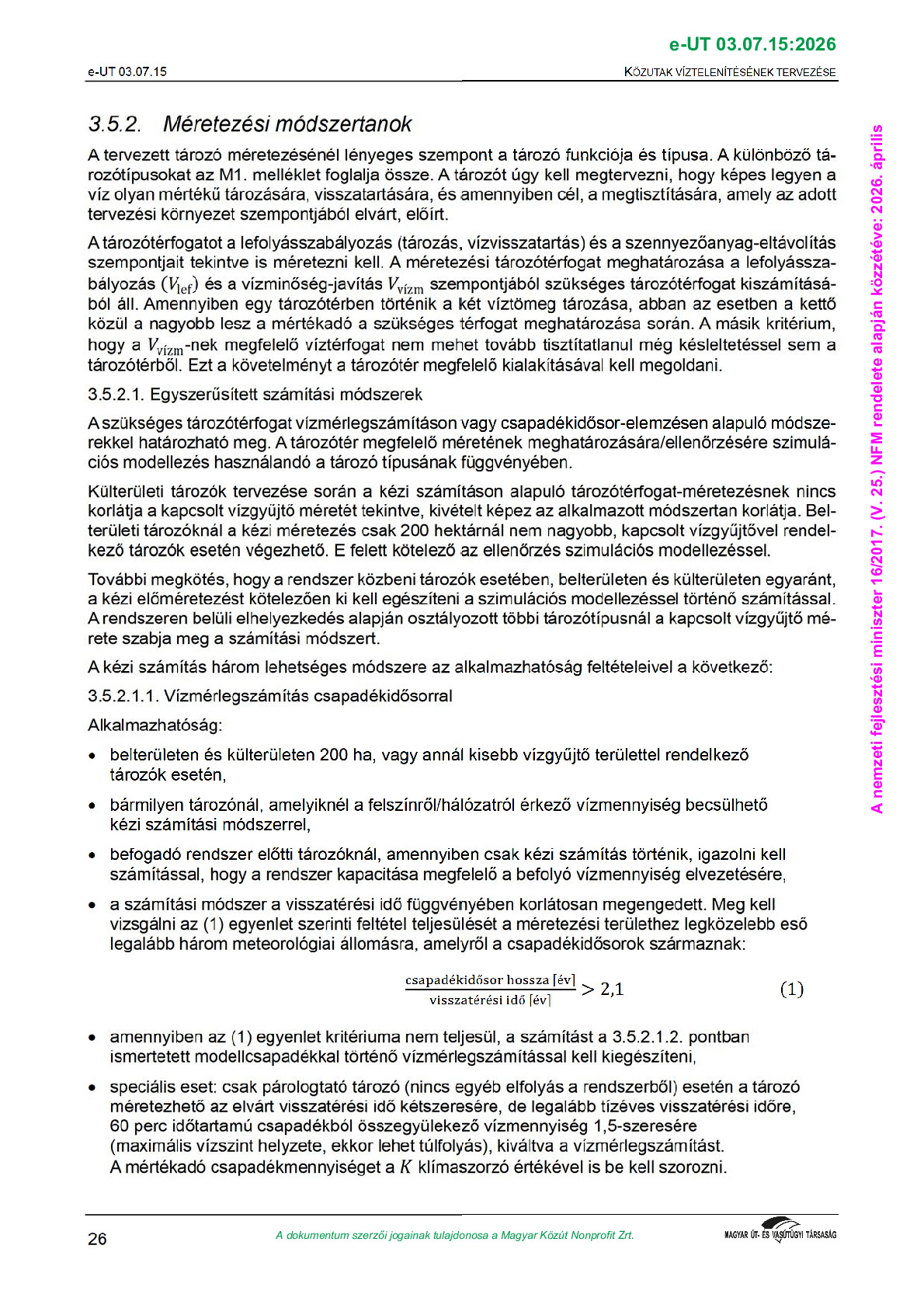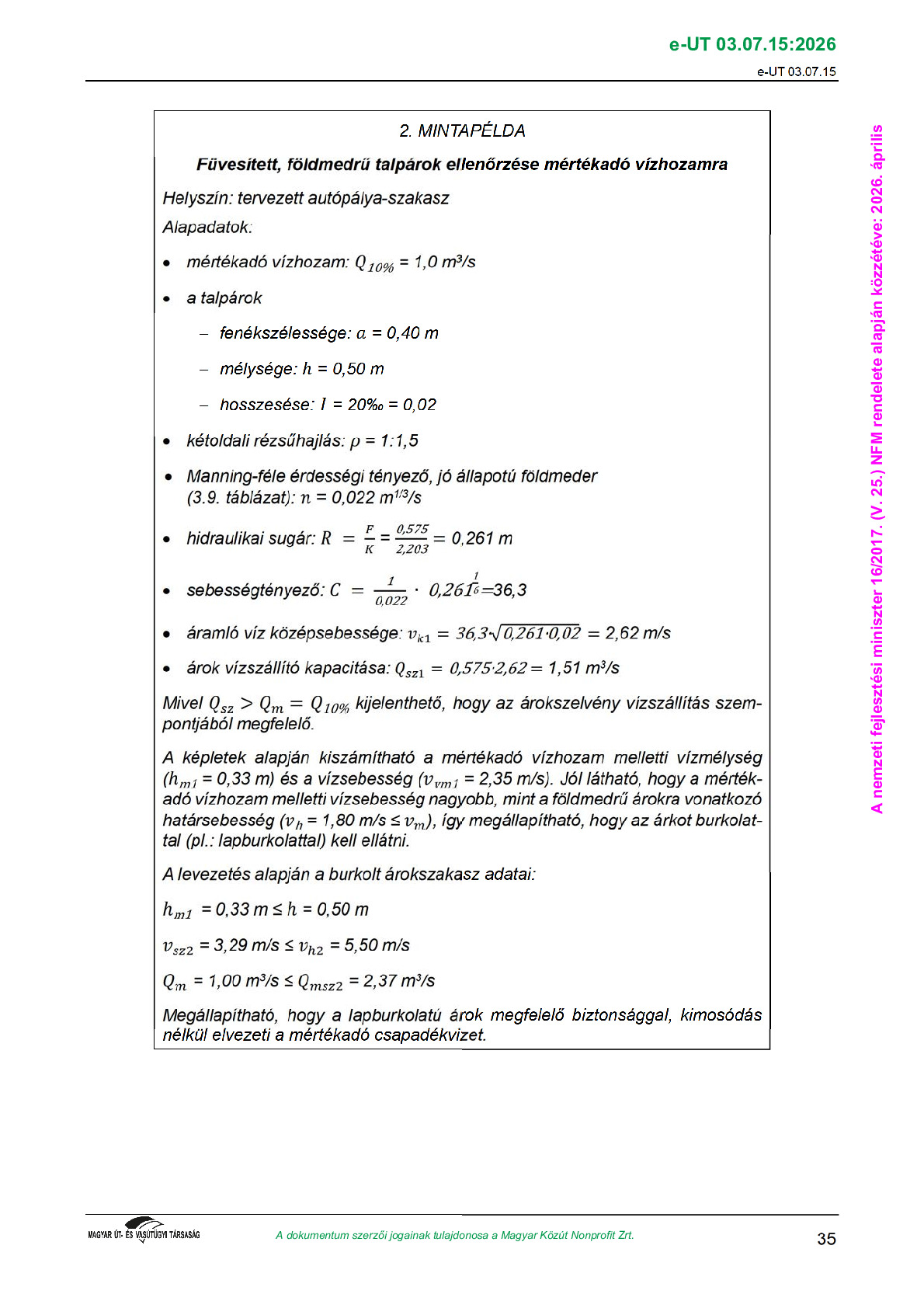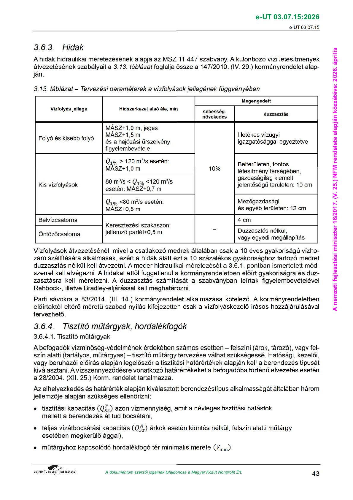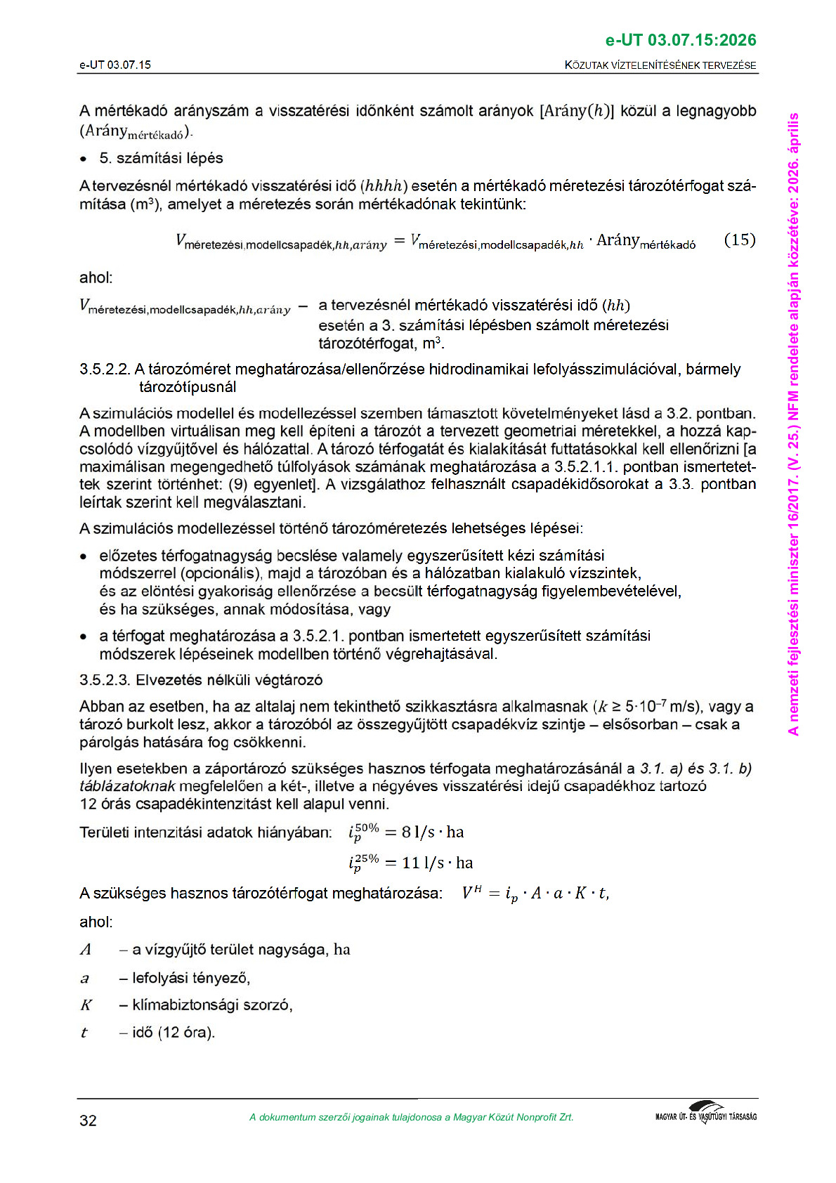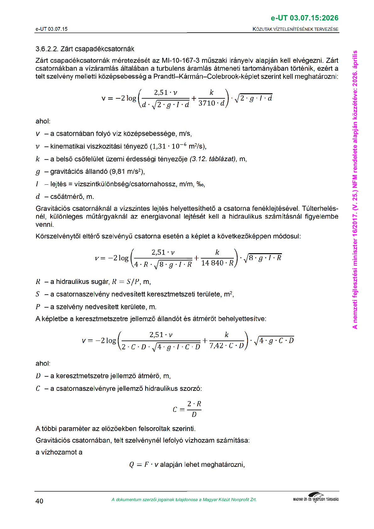 e-UT 03.07.15:2026 Közutak víztelenítésének tervezése