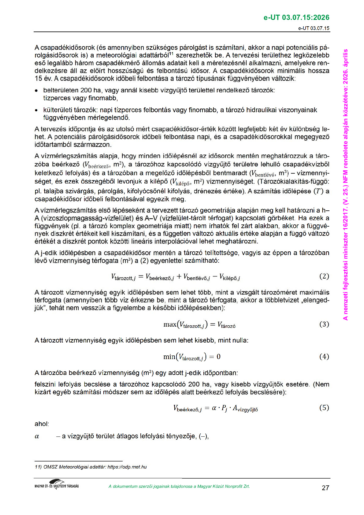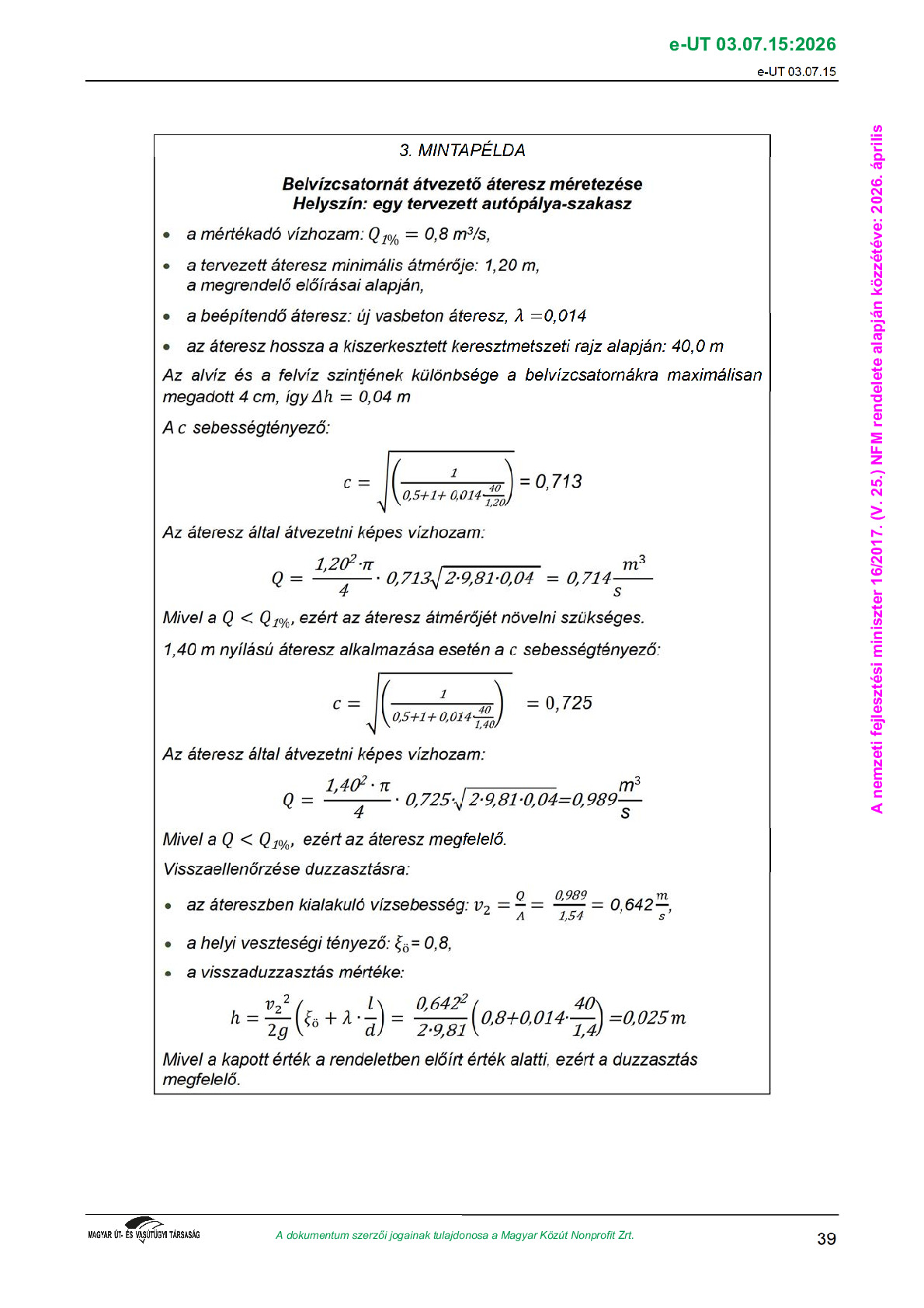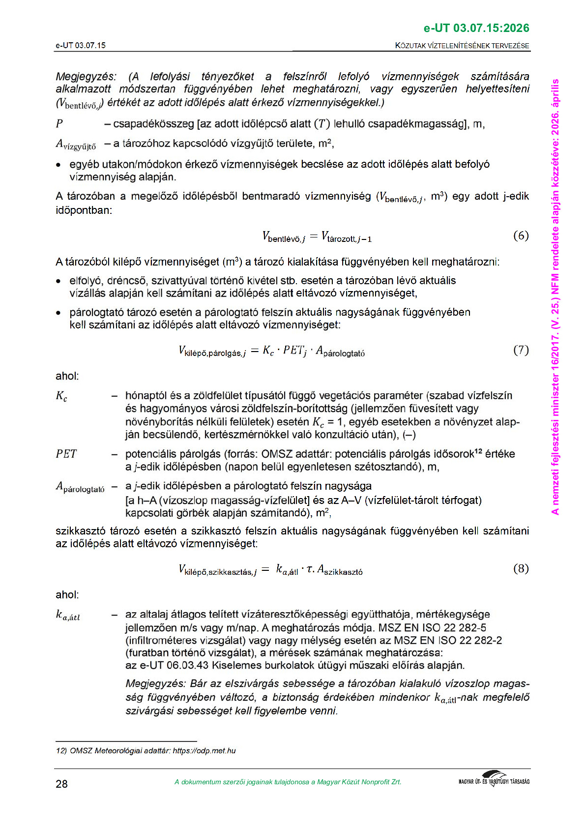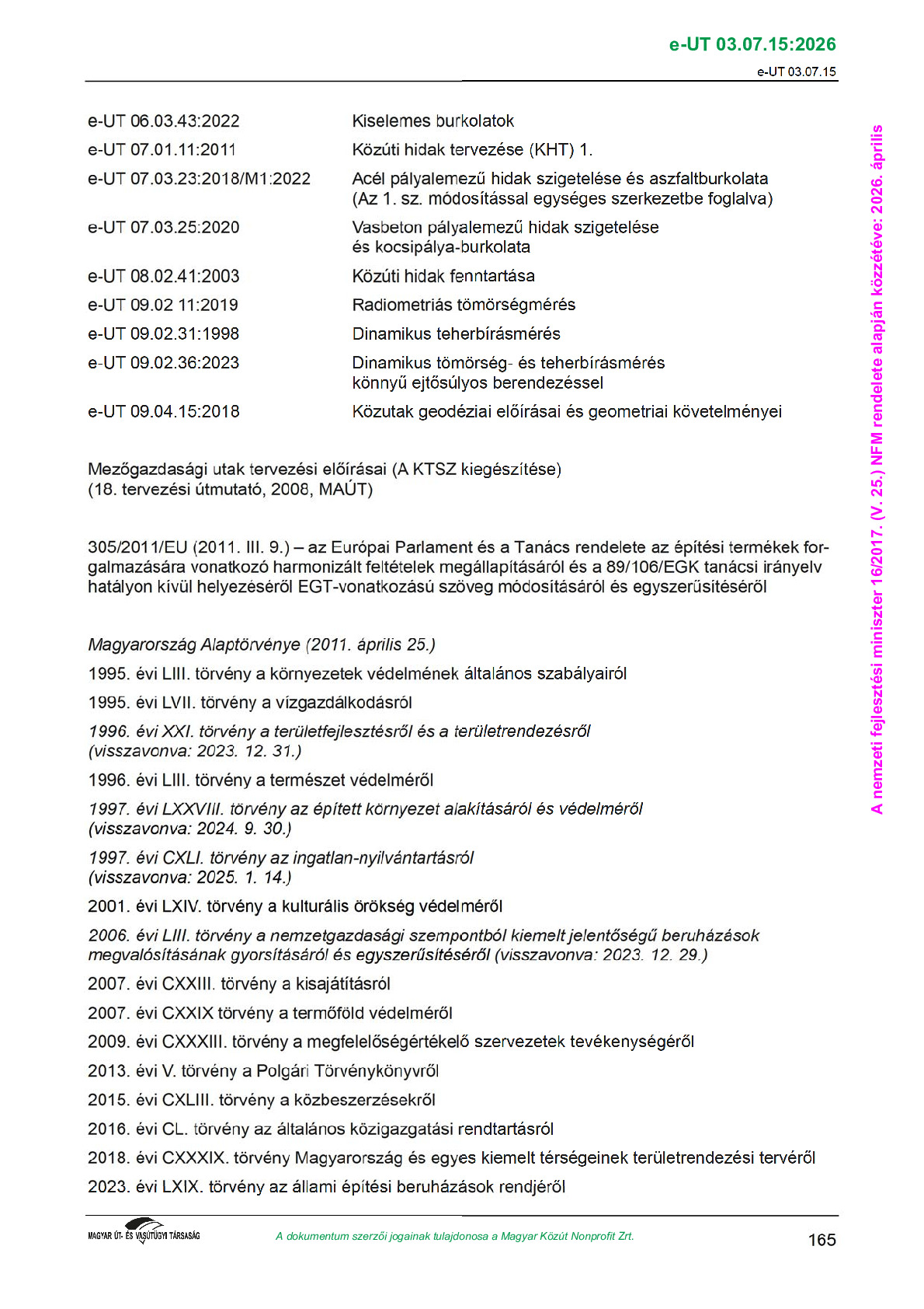 e-UT 03.07.15:2026 Közutak víztelenítésének tervezése