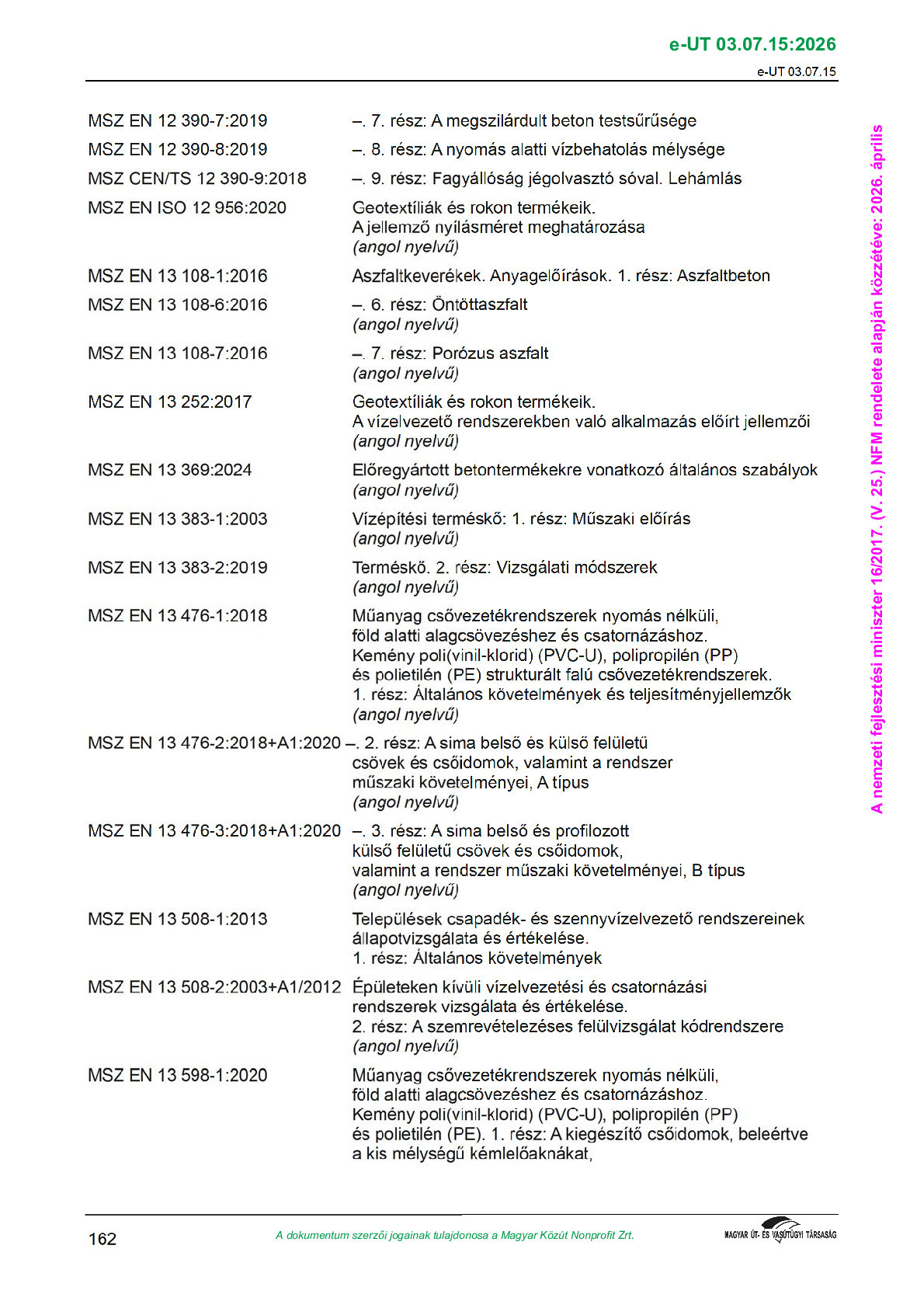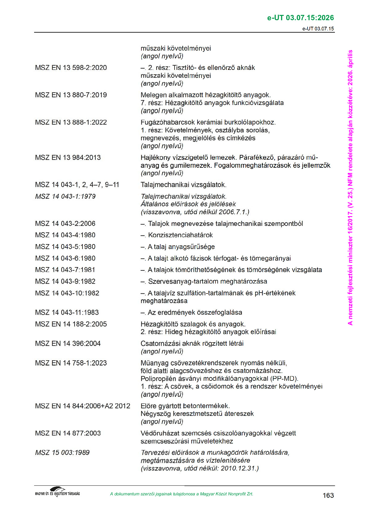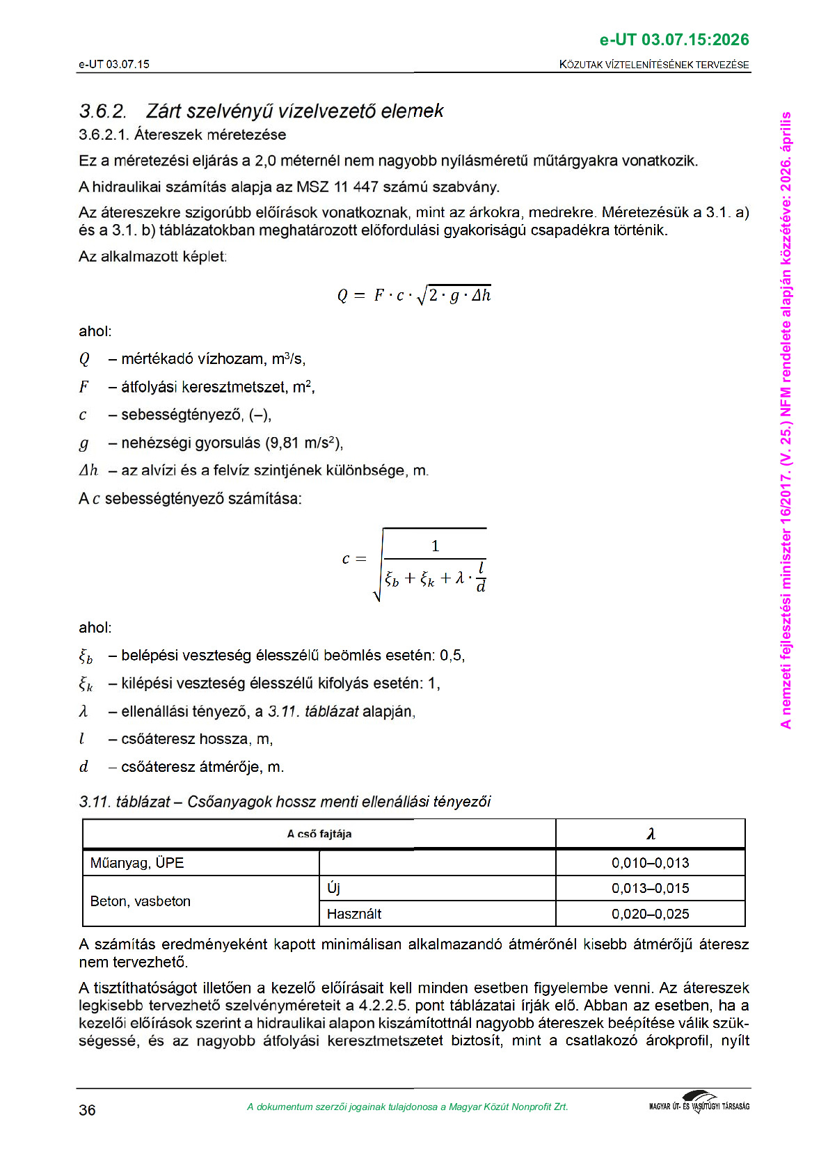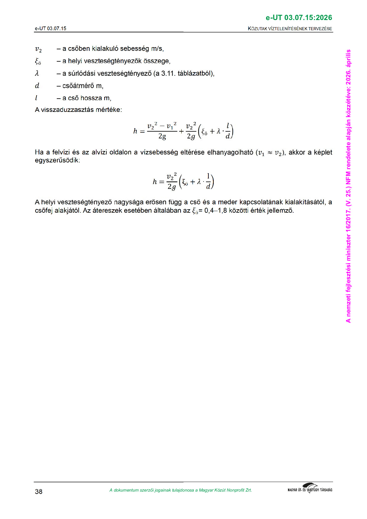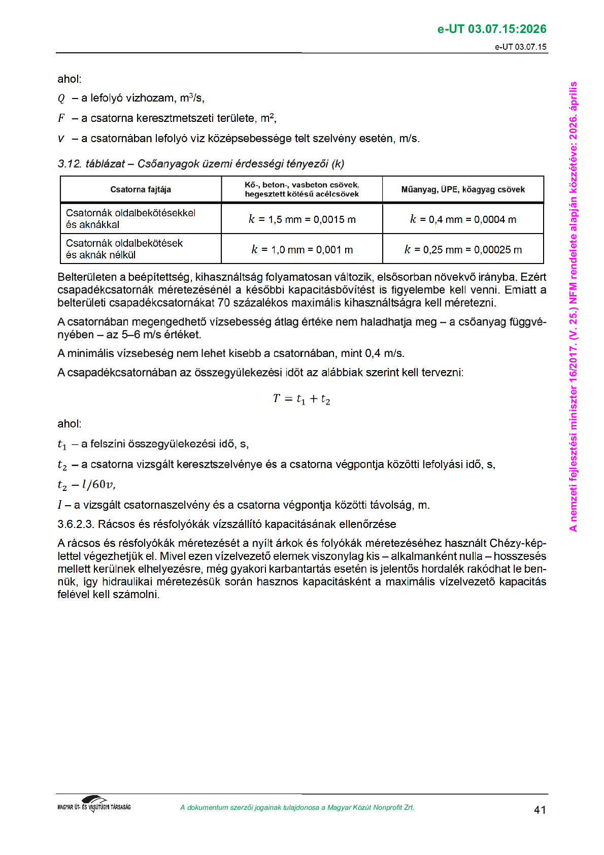 e-UT 03.07.15:2026 Közutak víztelenítésének tervezése